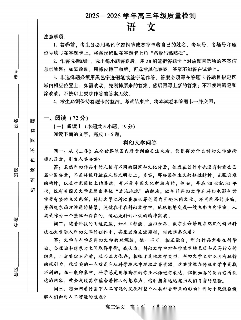【超清无水印】:高三,黑龙江省2026届齐齐哈尔市高三第一次模拟考试 【超清无水印】:高三,黑龙江省2026届齐齐哈尔市高三第一次模拟考试