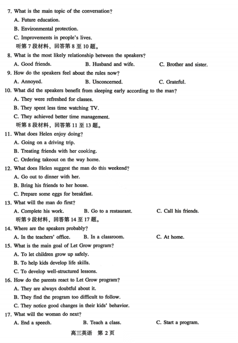 【超清无水印】:高三,成都七中高2026届高三二诊模拟考试 【超清无水印】:高三,成都七中高2026届高三二诊模拟考试
