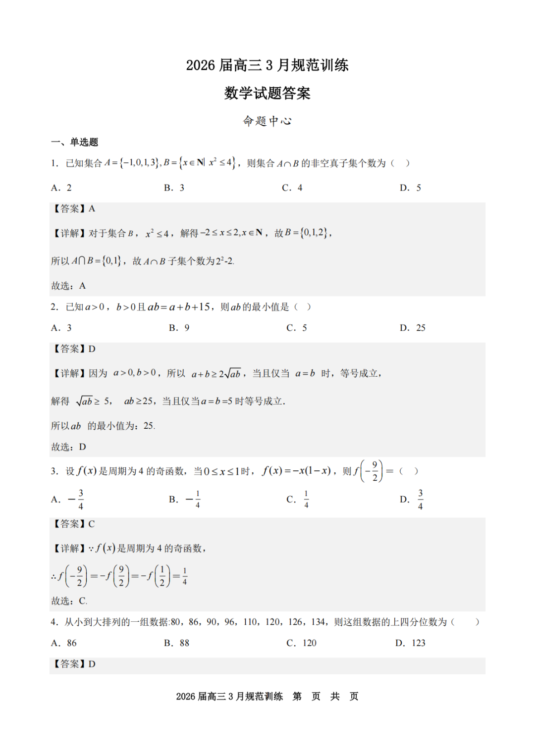【泉州三检全科】三明、泉州市2026届高中毕业班模拟考试(一) 【泉州三检全科】三明、泉州市2026届高中毕业班模拟考试(一)