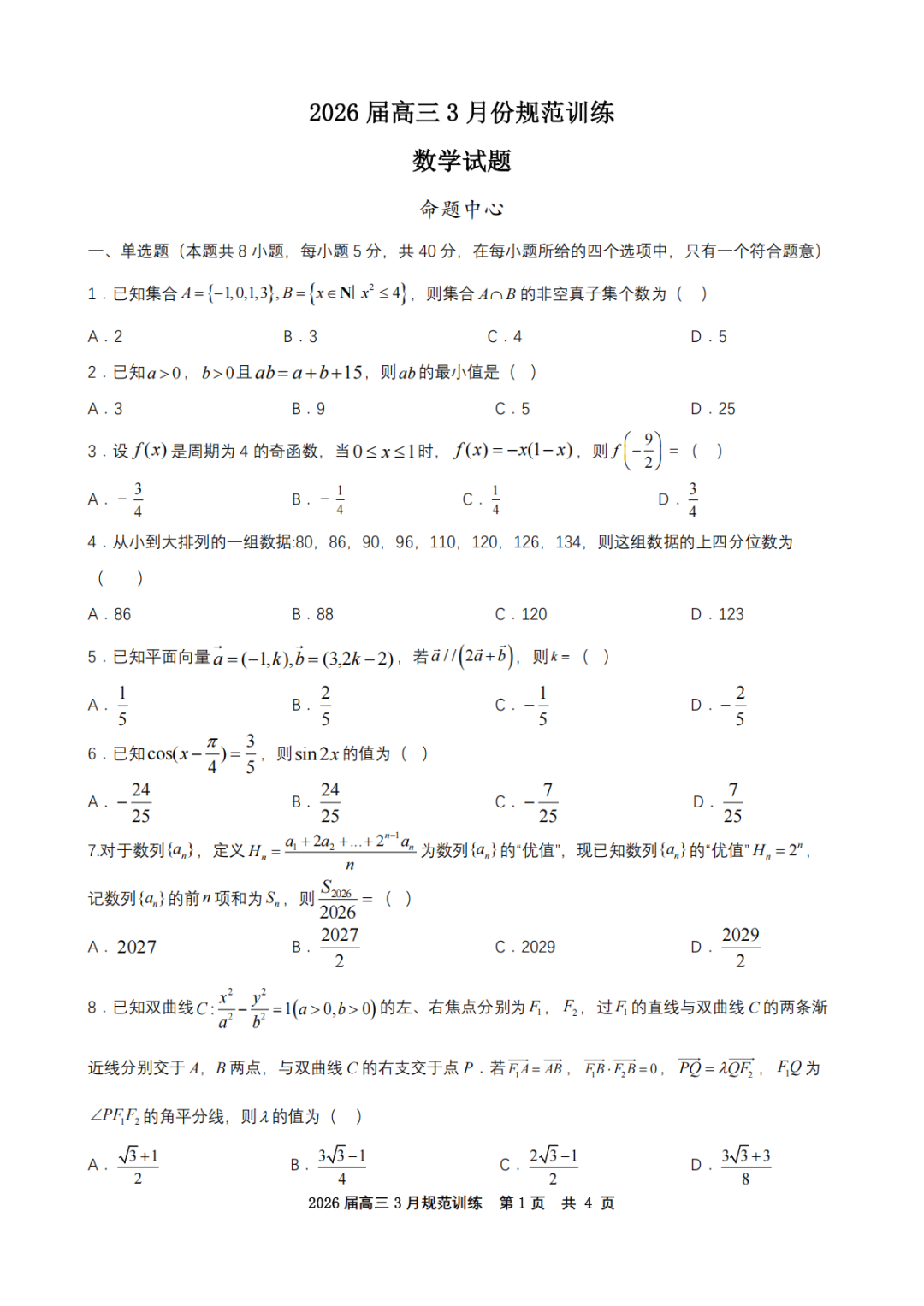 【全科】山西大学附中2025-2026学年高三年级第二学期3月模块诊断考试 【全科】山西大学附中2025-2026学年高三年级第二学期3月模块诊断考试