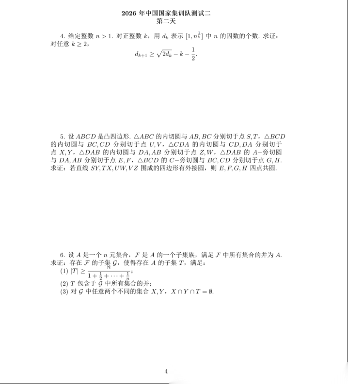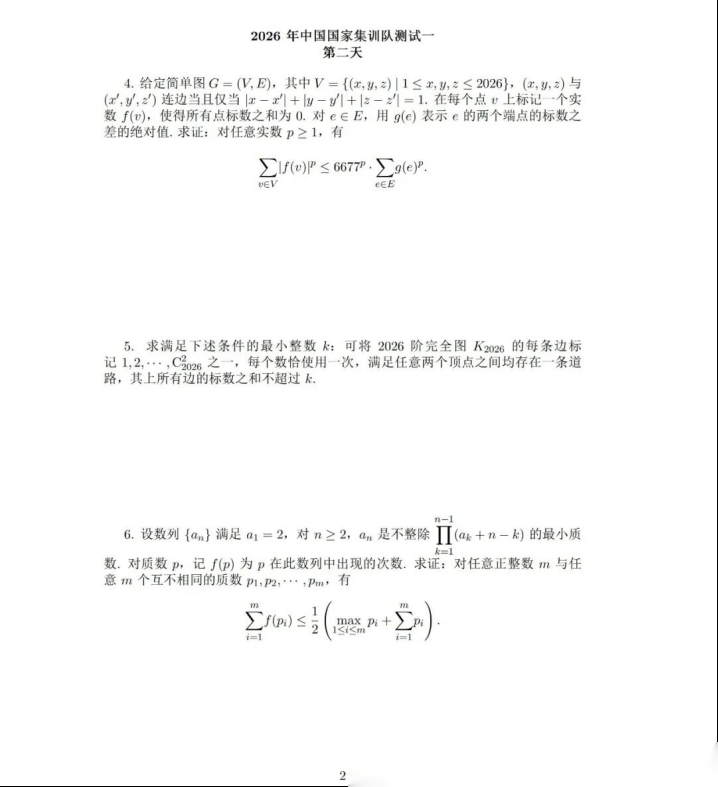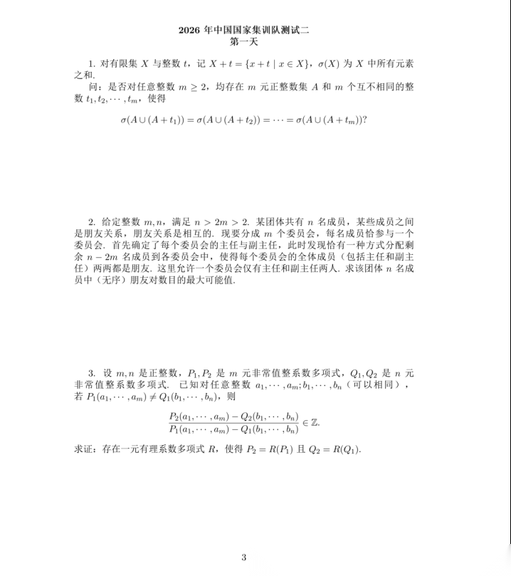 【IMO】【数学竞赛】2026年第67届IMO国家集训队第一阶段集训考试(3.7-3.8第一天和第二天考试,3.12-3.13第三天第四天考试)全部考试试题