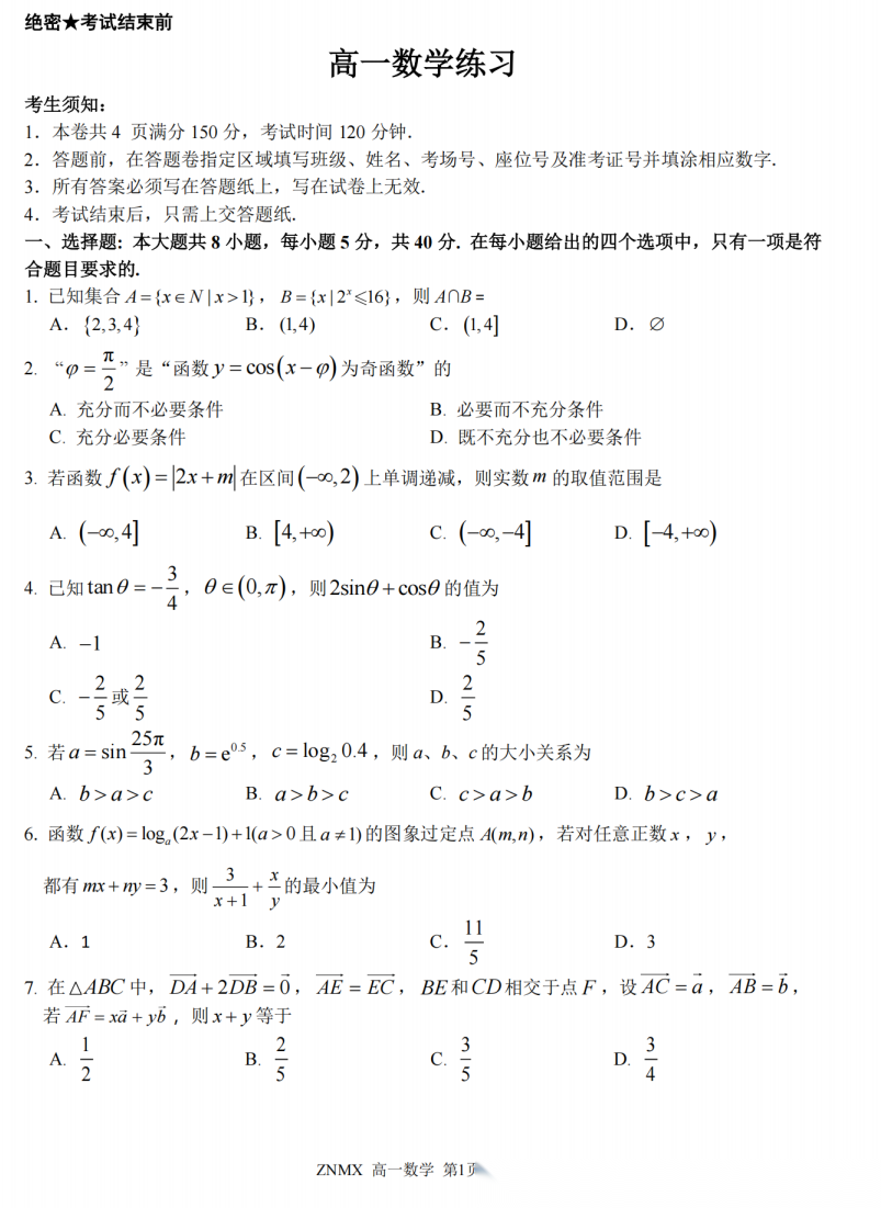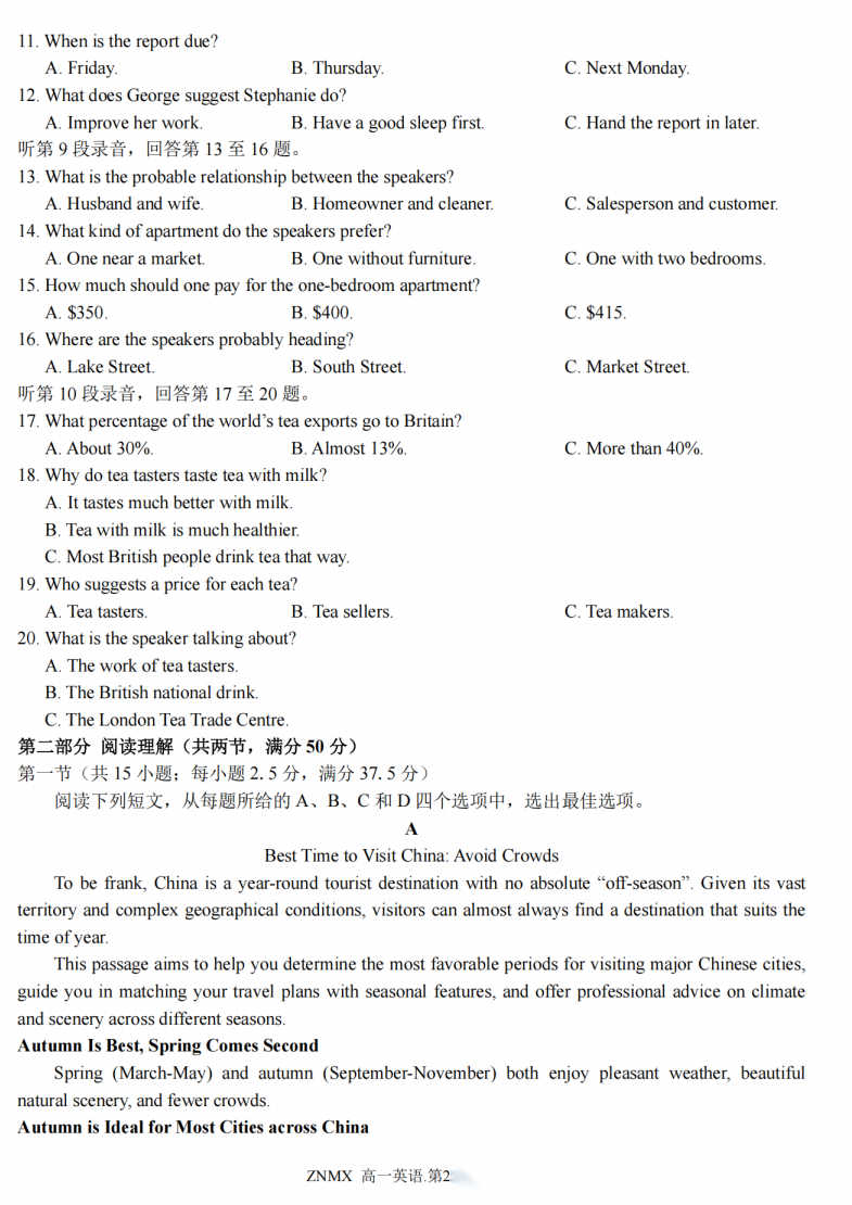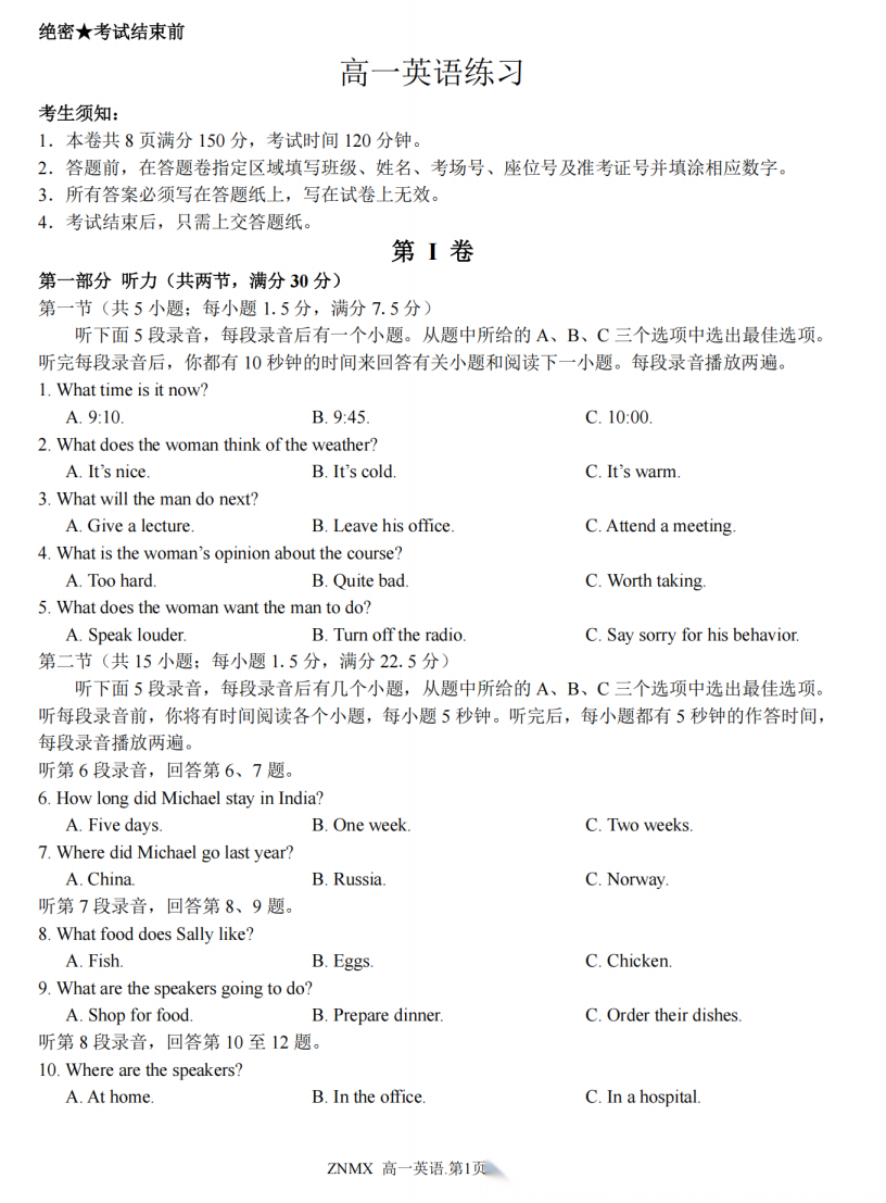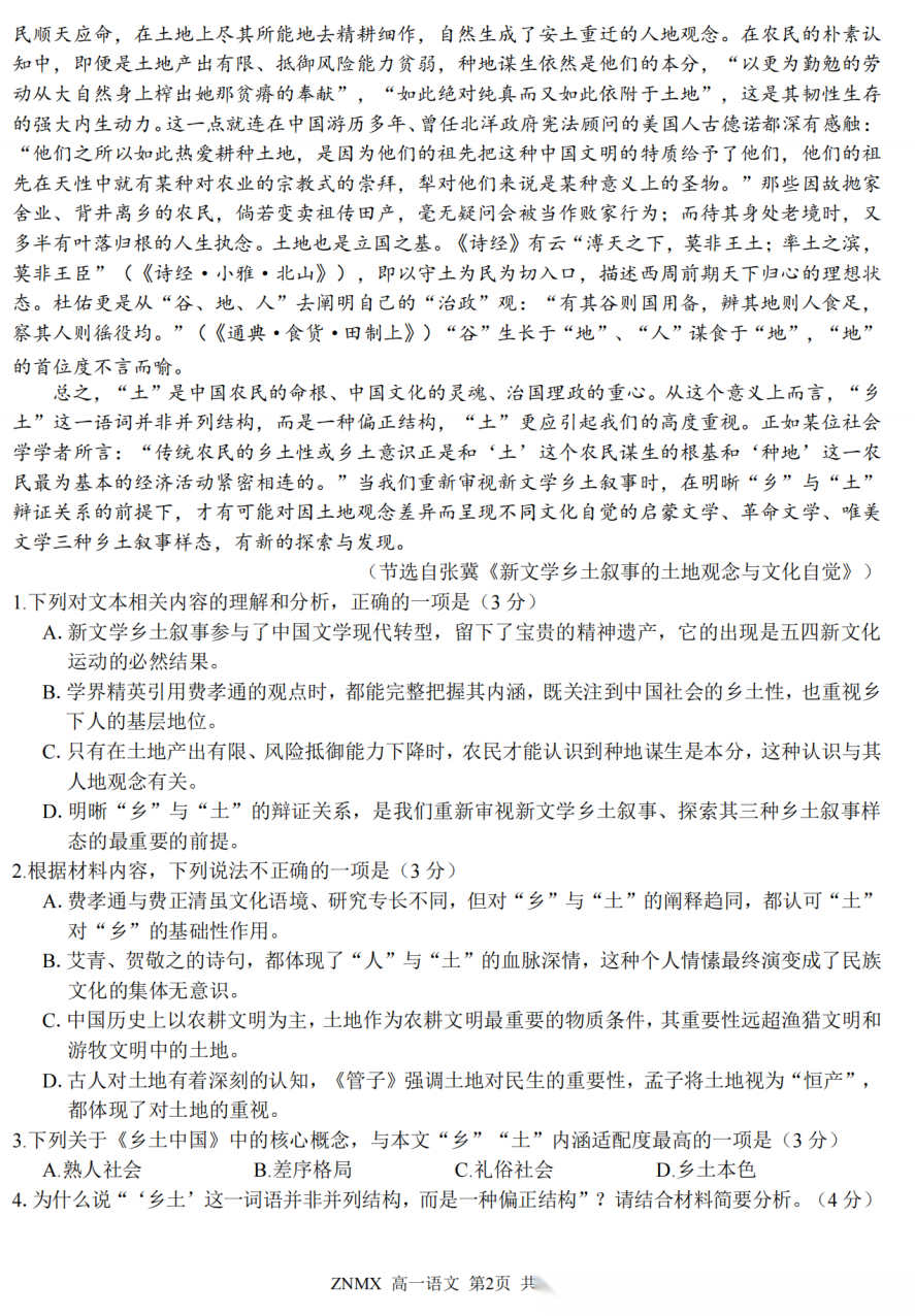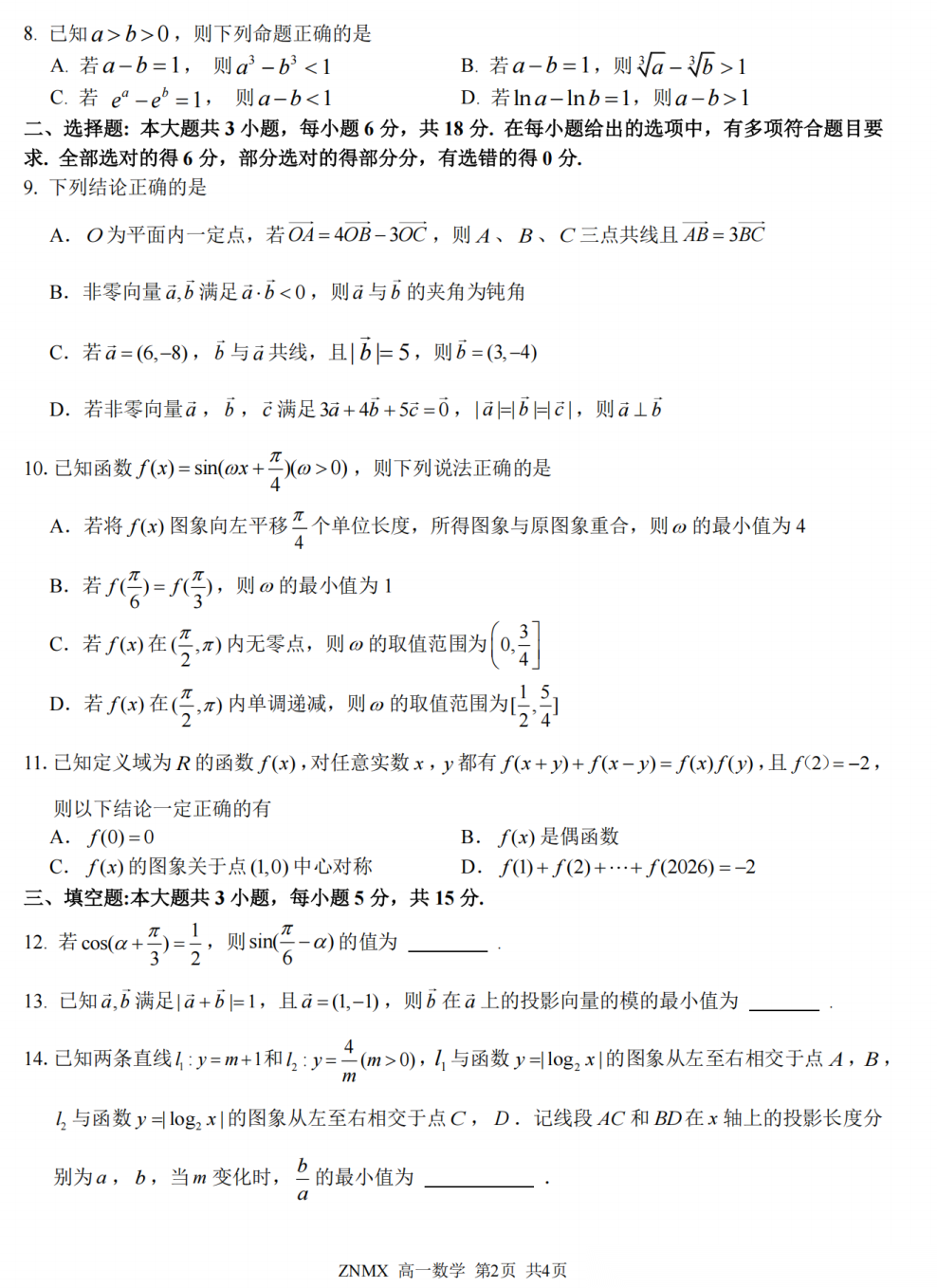 【浙江卷】【高一】浙江省浙南名校联盟2026年高一年级下学期返校(开学)考试(3.4-3.5) 全科试题卷+答案