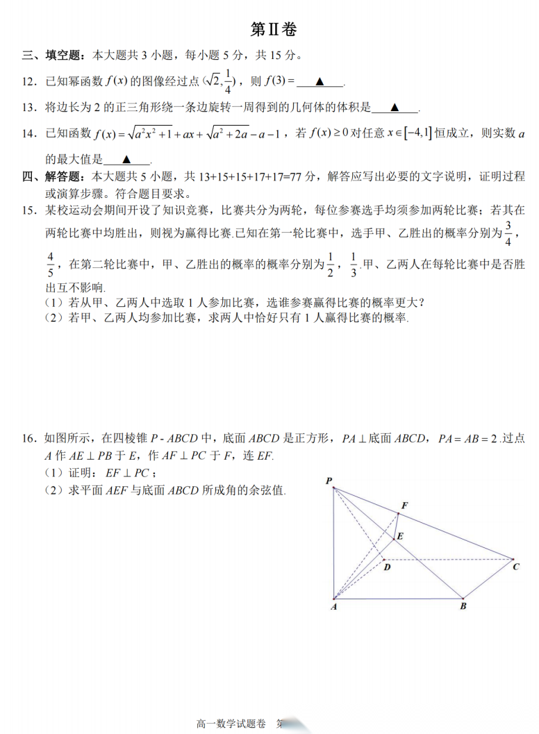 【浙江卷】【高一】浙江省浙南名校联盟2026年高一年级下学期返校(开学)考试(3.4-3.5) 全科试题卷+答案 【浙江卷】【高一】浙江省浙南名校联盟2026年高一年级下学期返校(开学)考试(3.4-3.5) ...