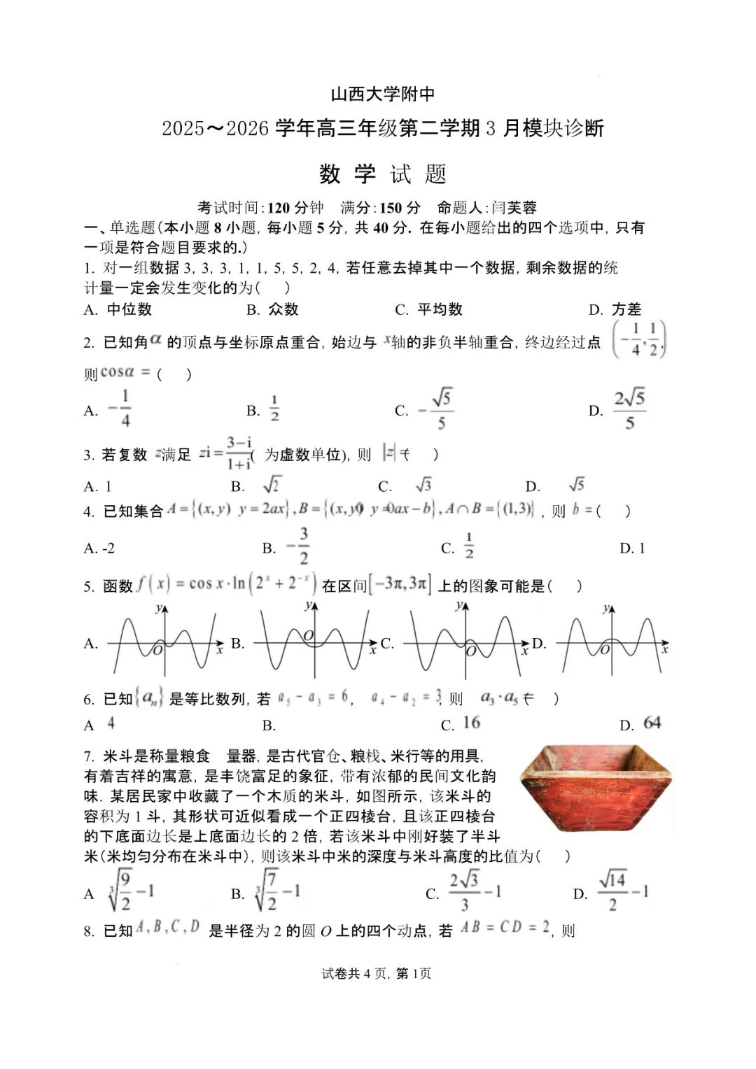 【全科】山西大学附属中学校2025-2026学年高三年级第二学期3月模块诊断