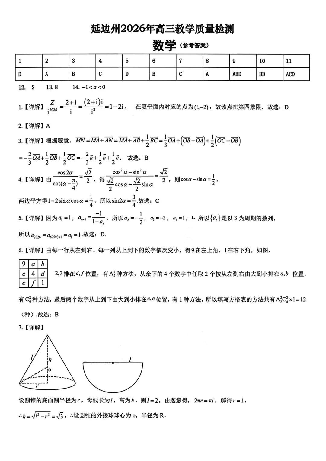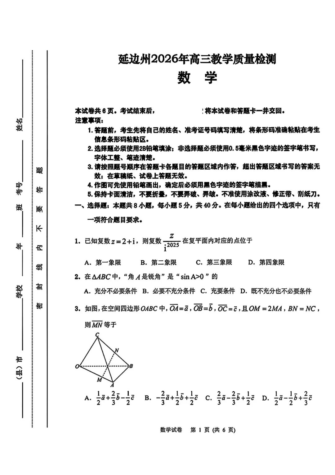 【全科】2026届吉林省延边州高三3月教学质量检测