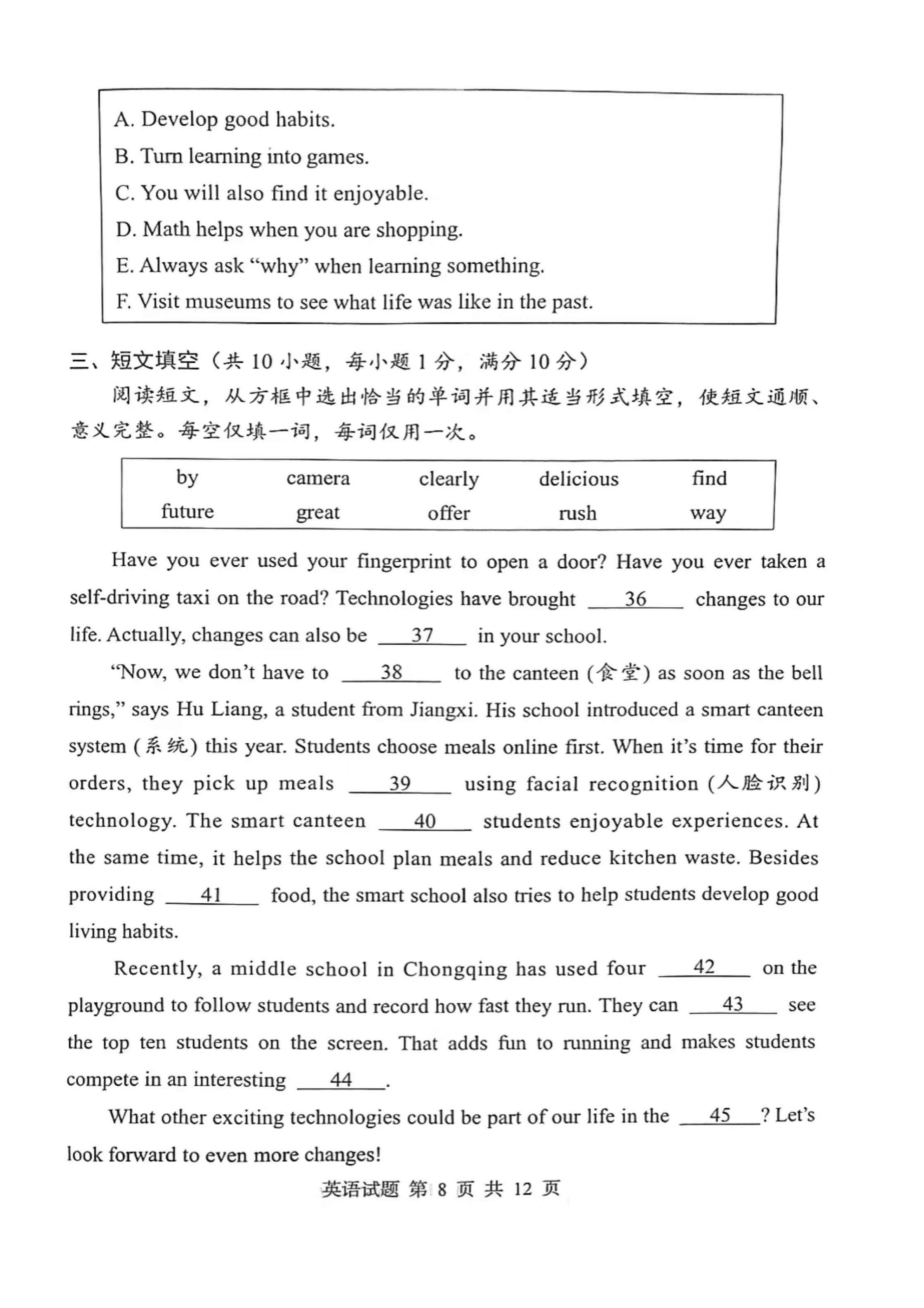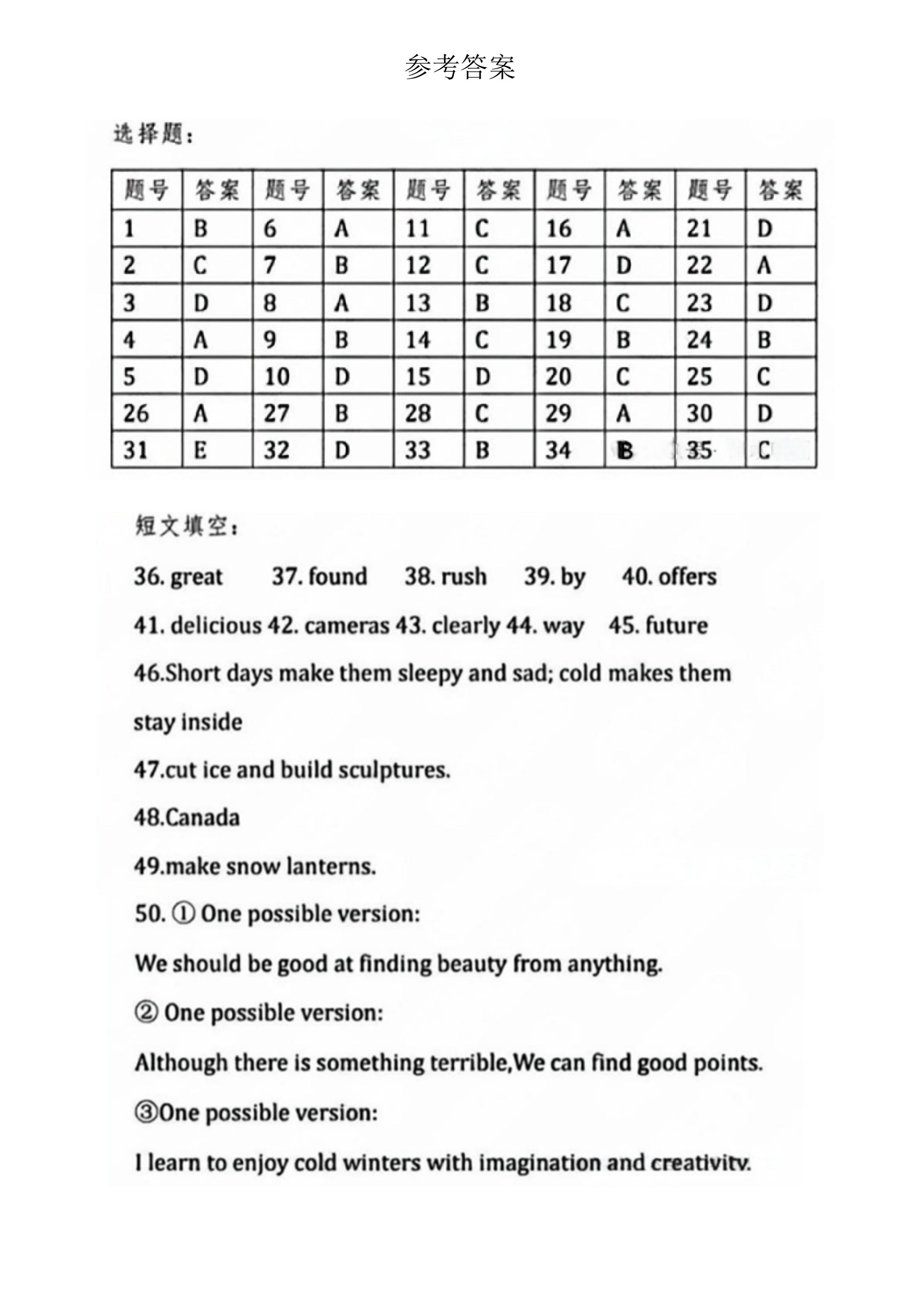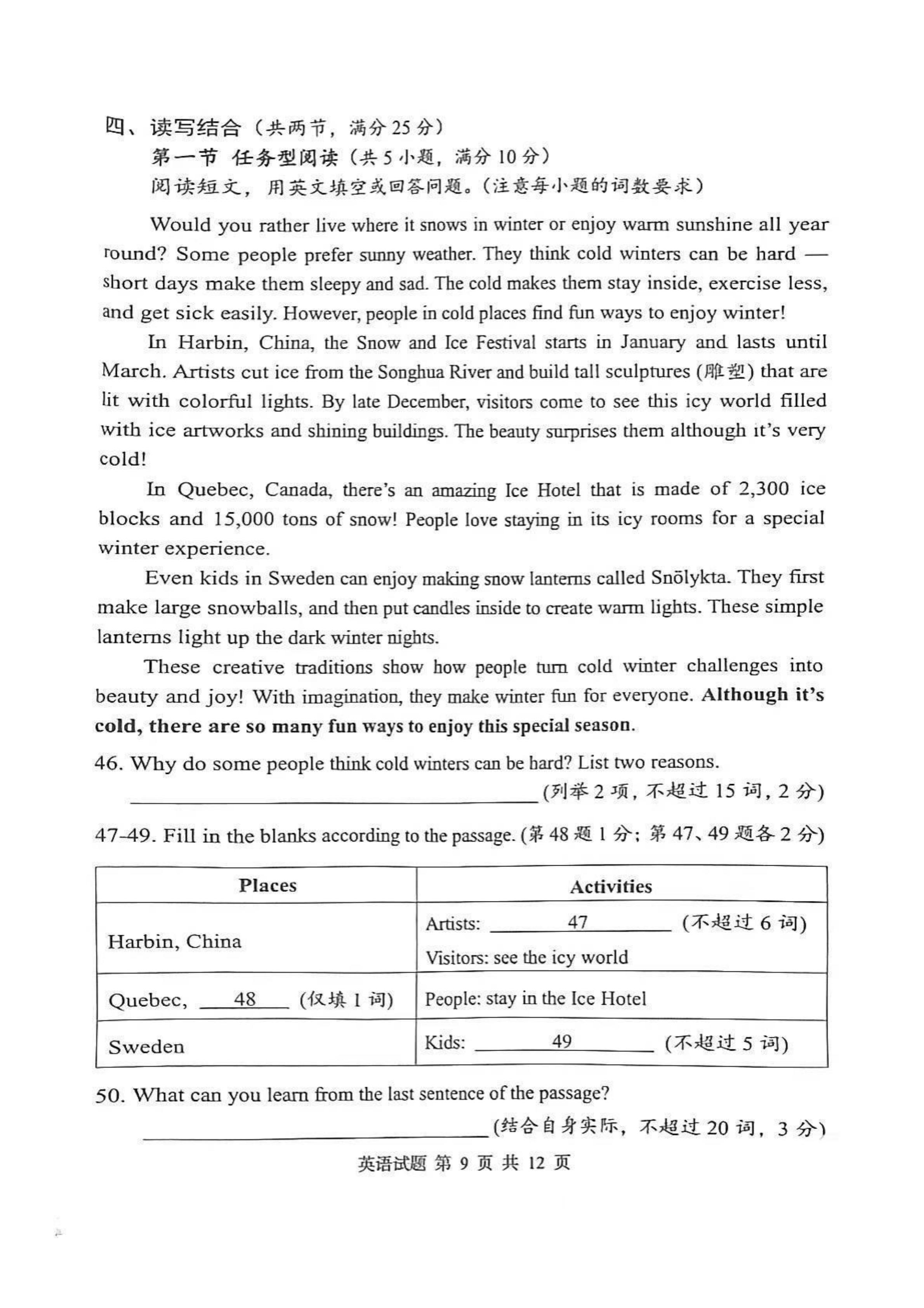 2025年天津中考英语真题试卷及答案解析 2026-03-15 -