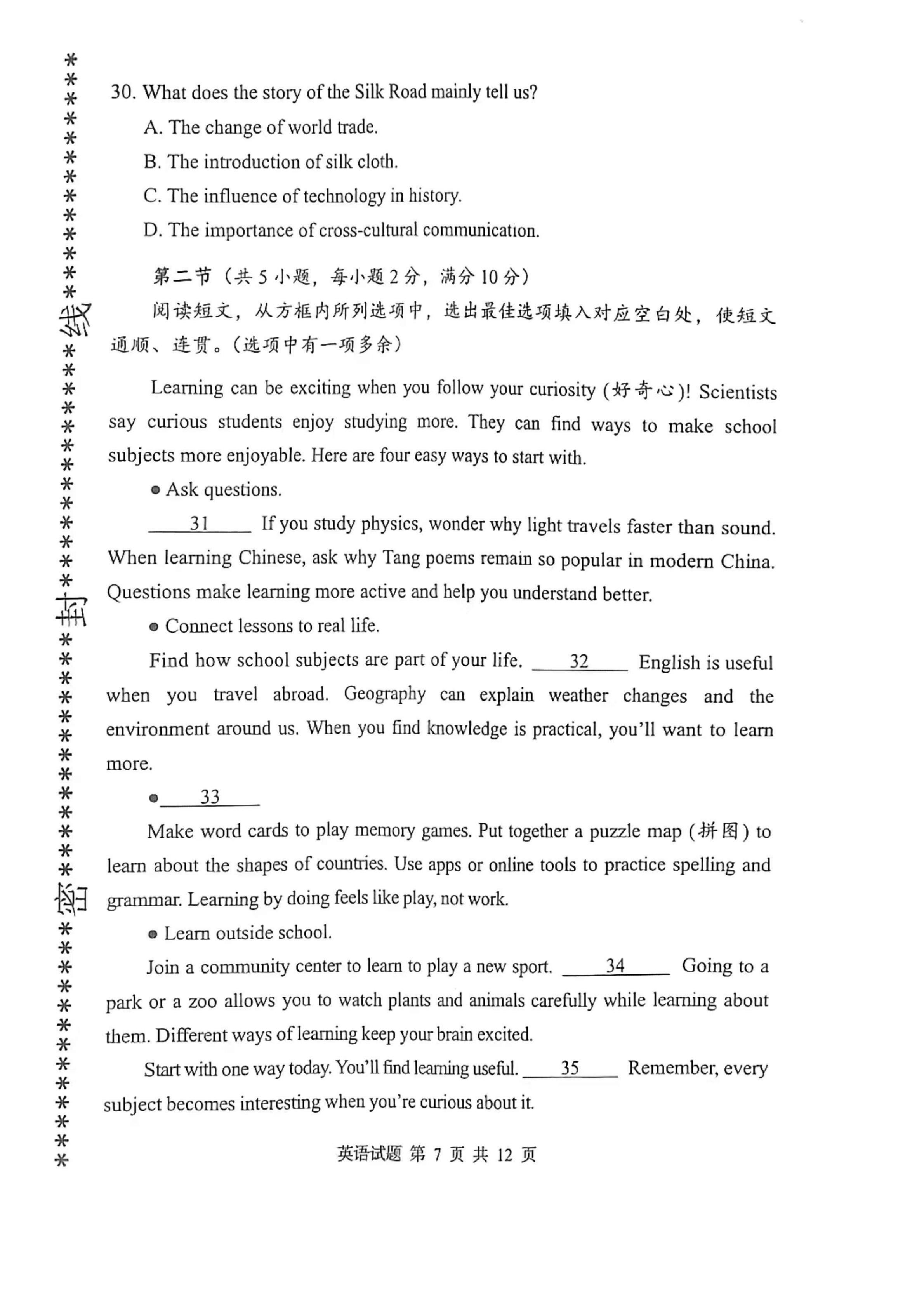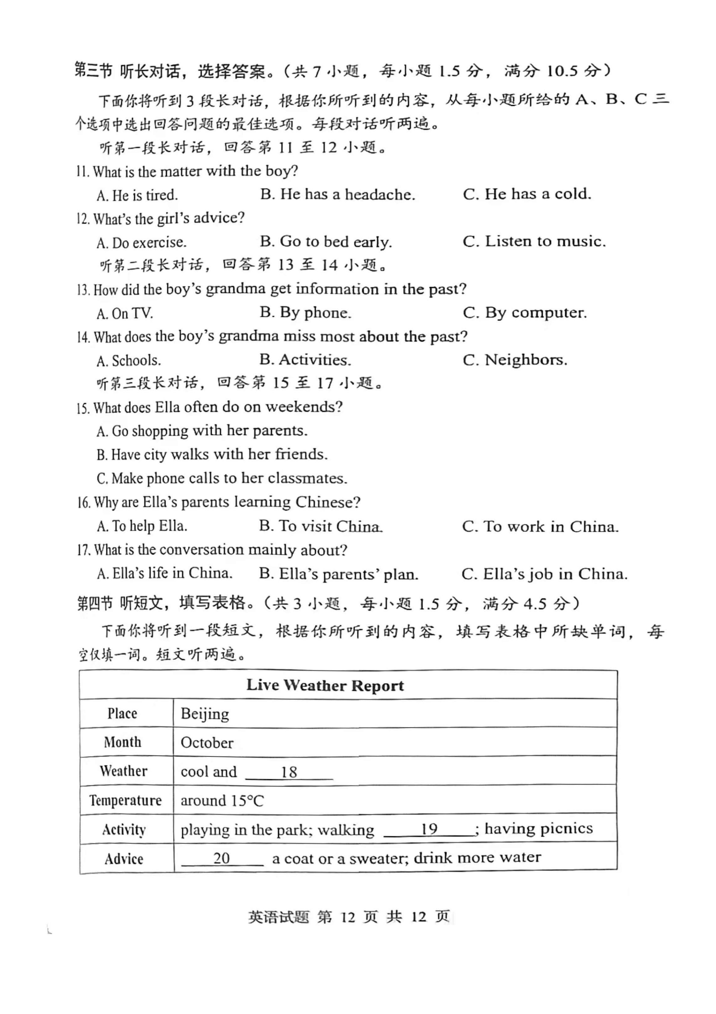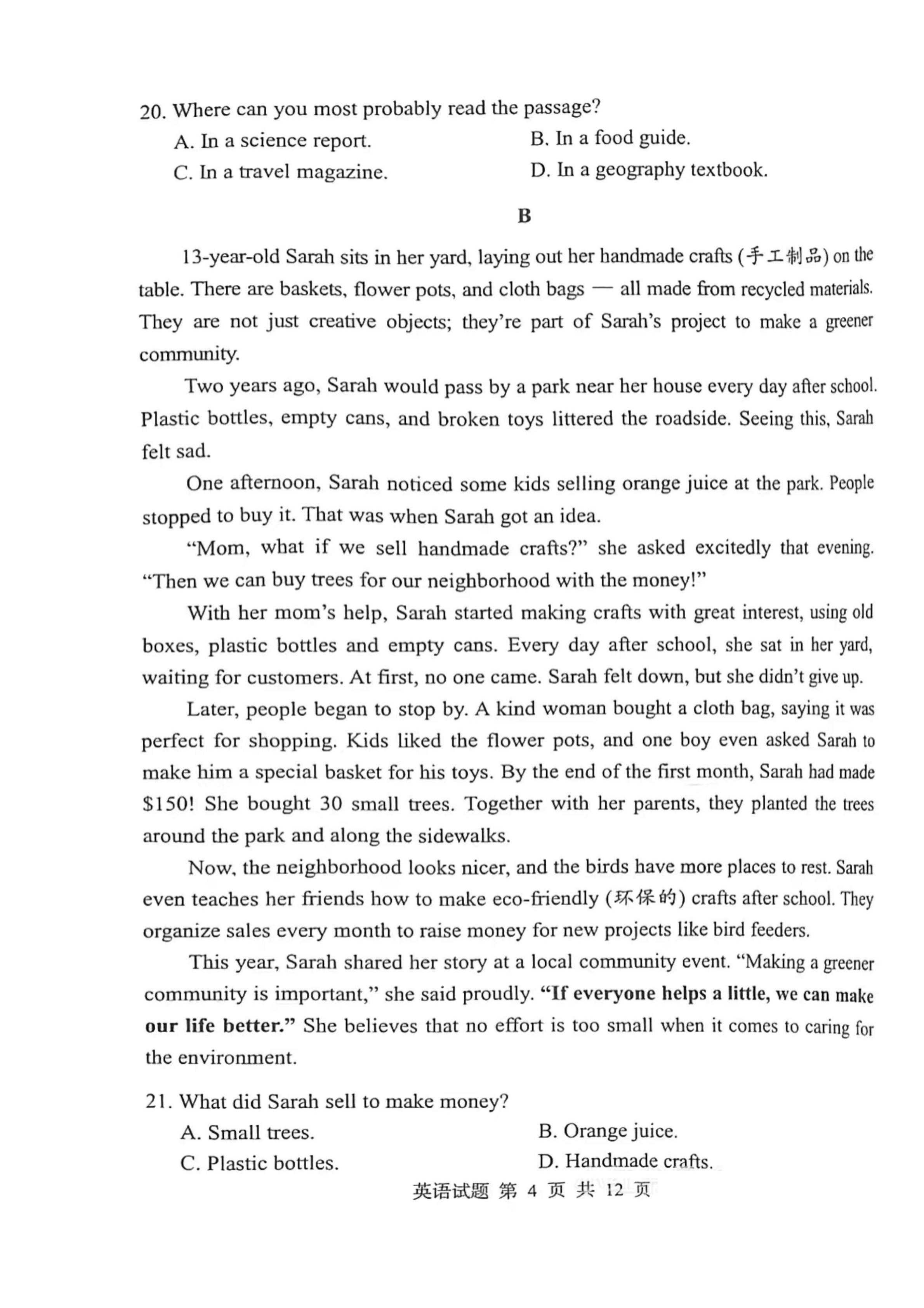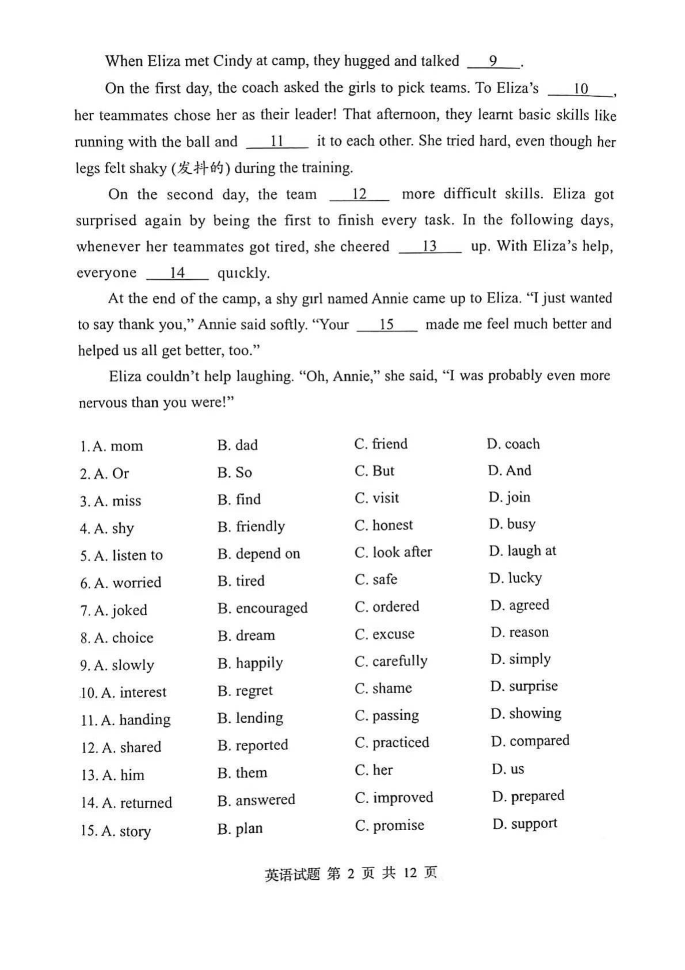 2025年天津中考英语真题试卷及答案解析 2026-03-15 -