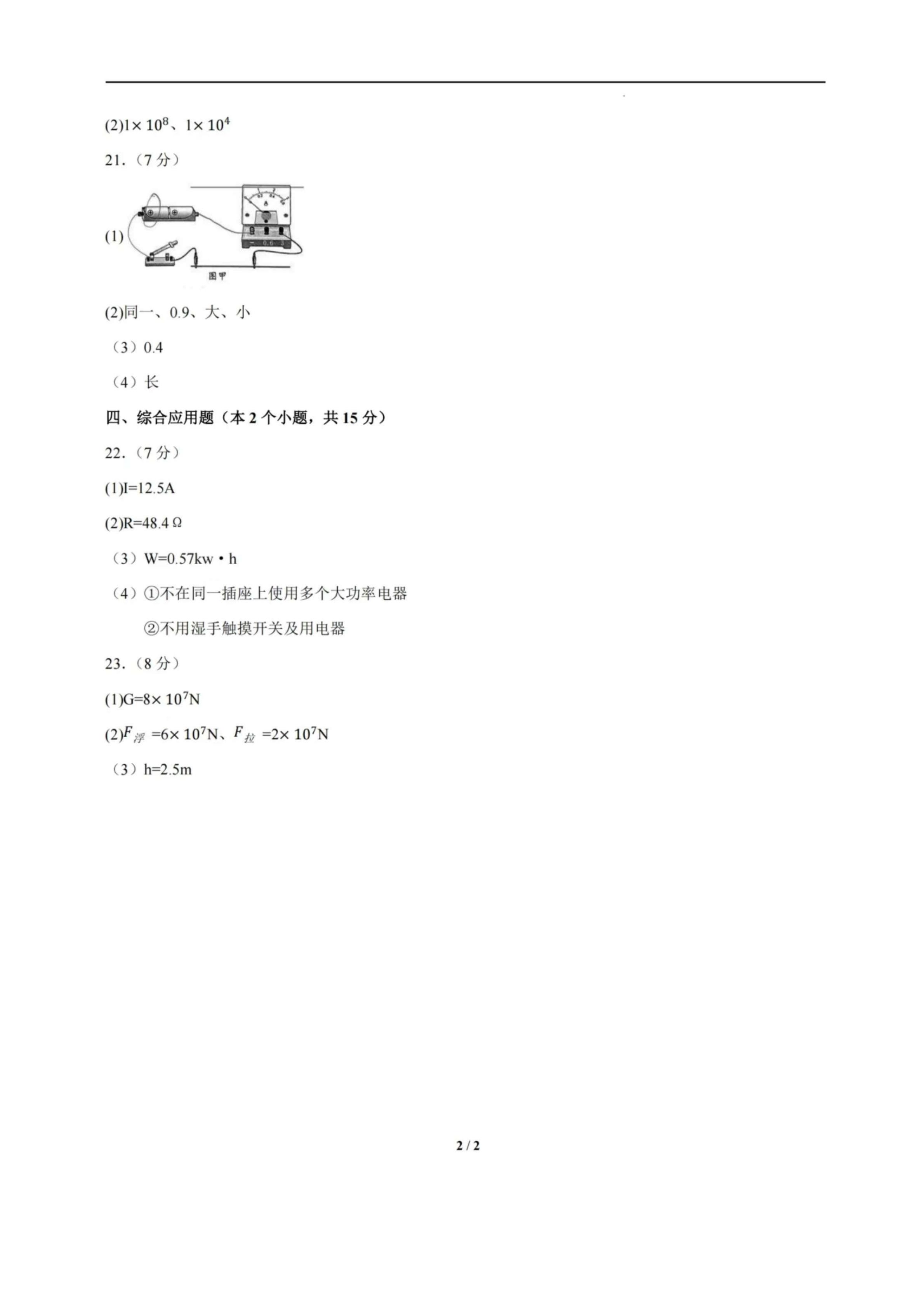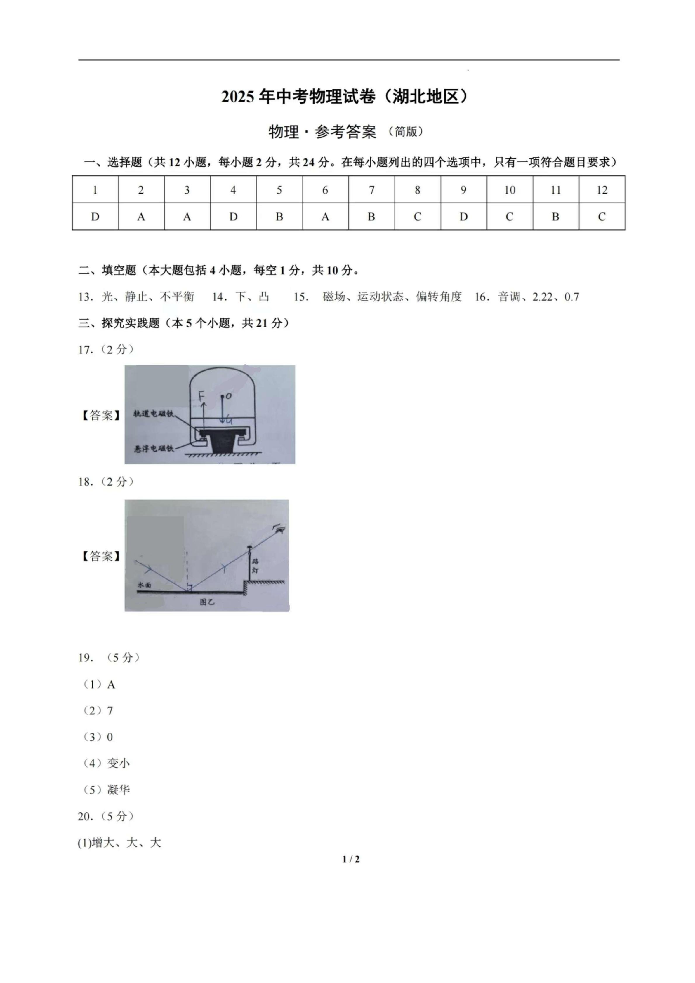 2025年湖北中考物理真题试卷及答案解析
