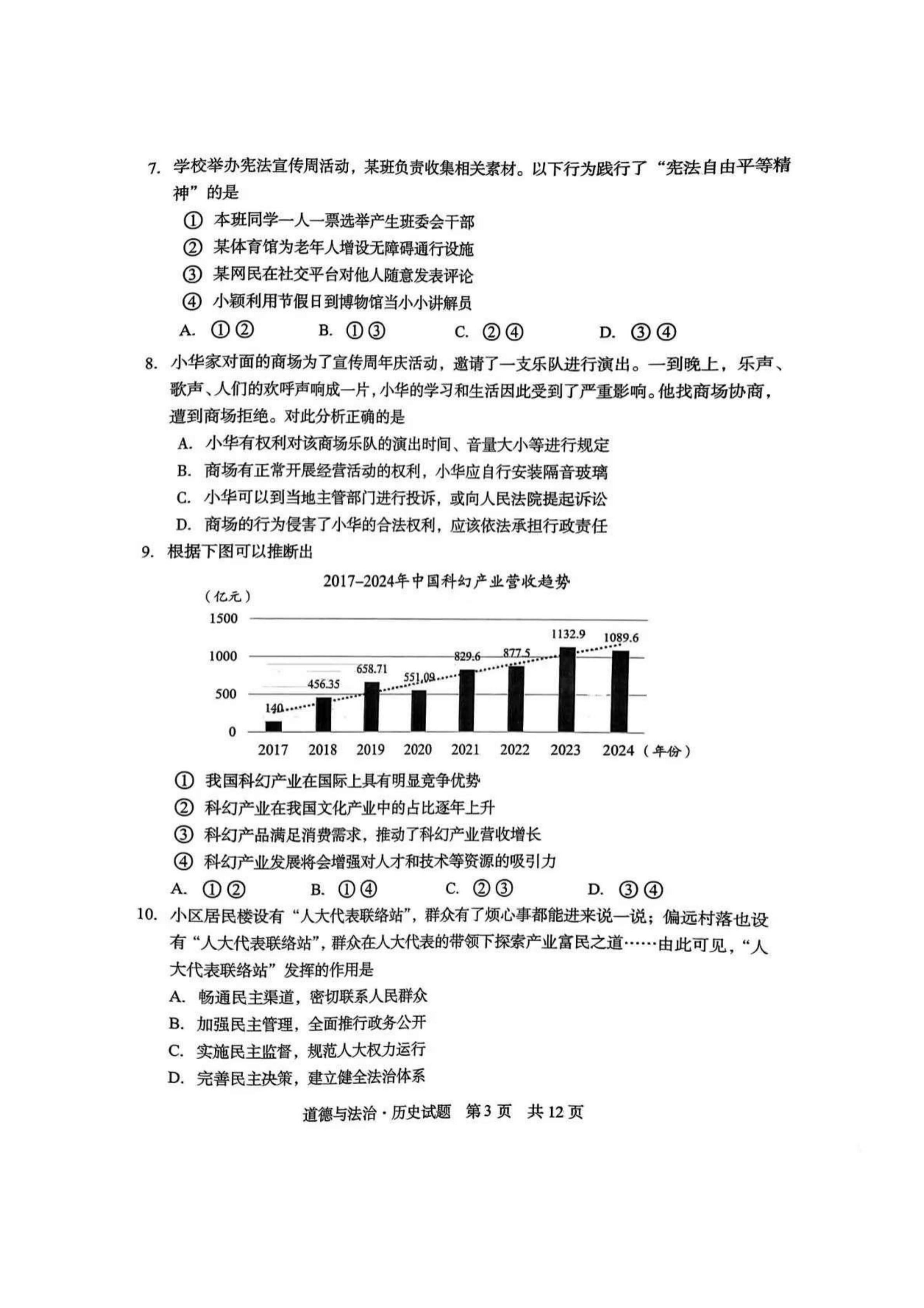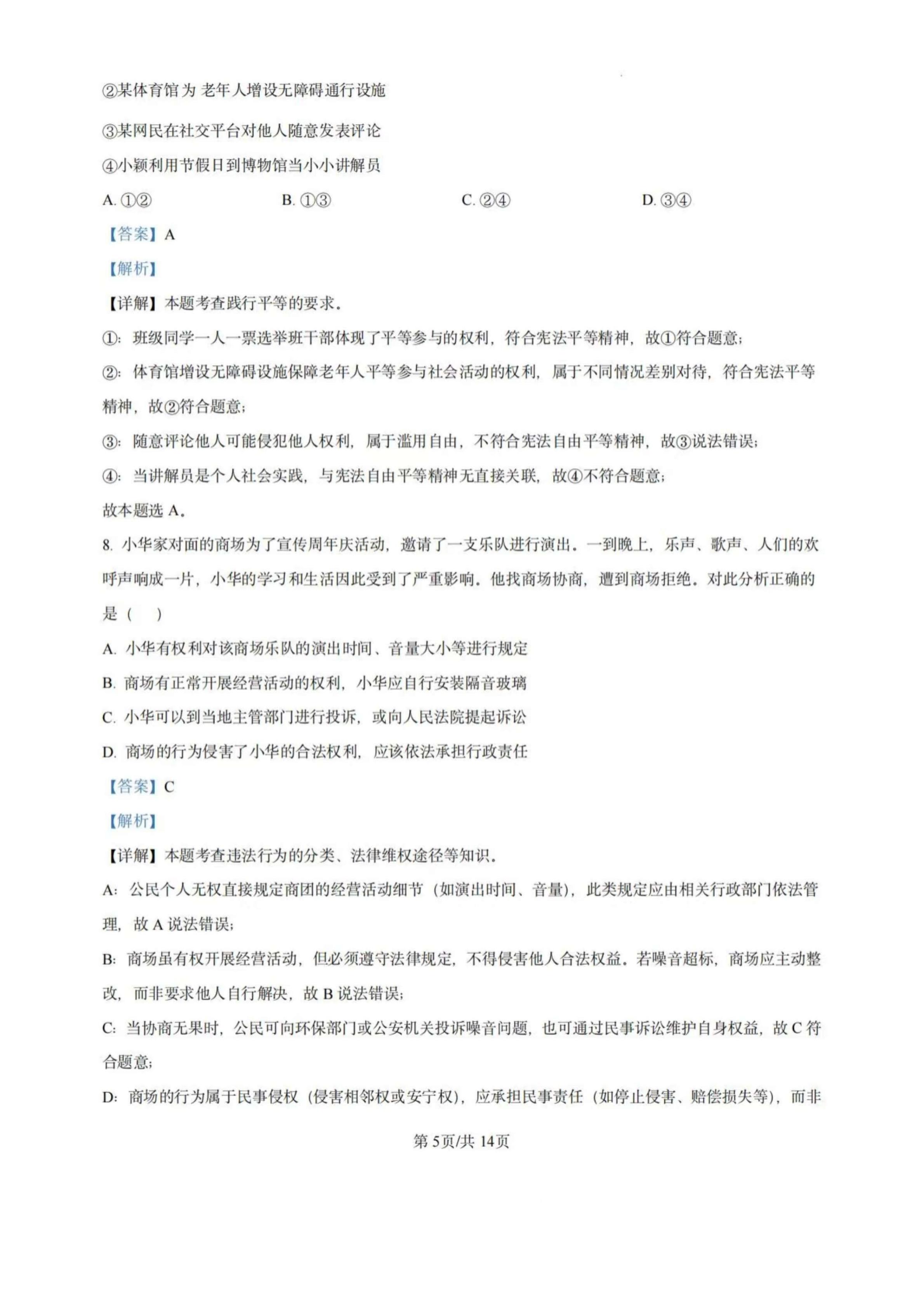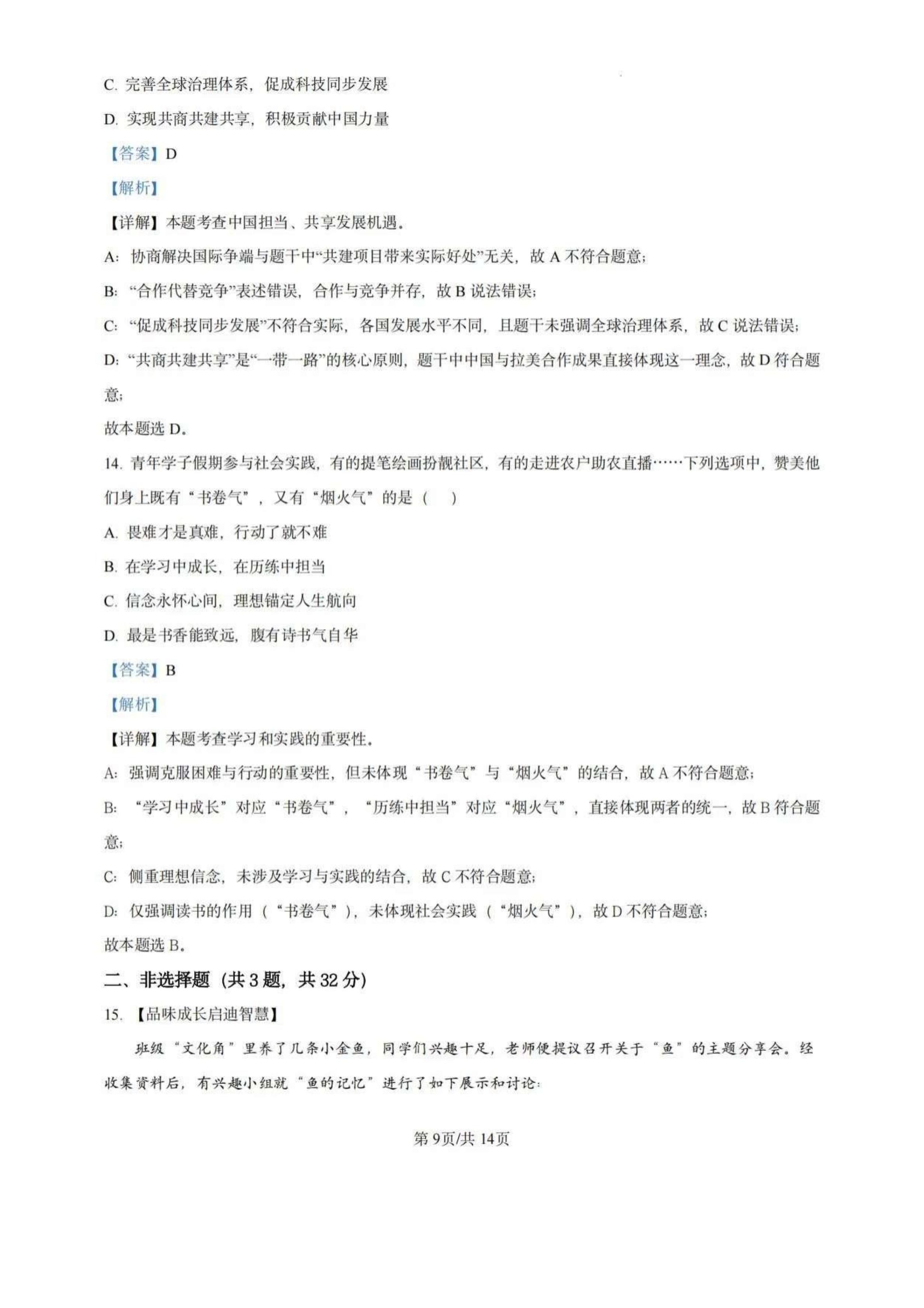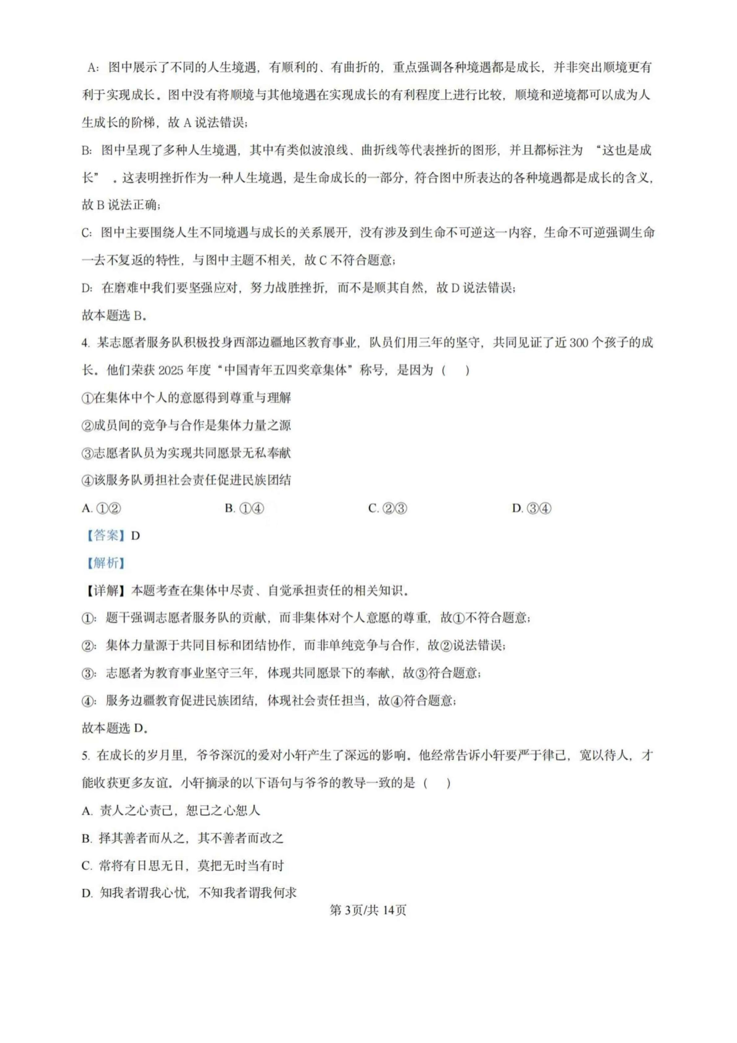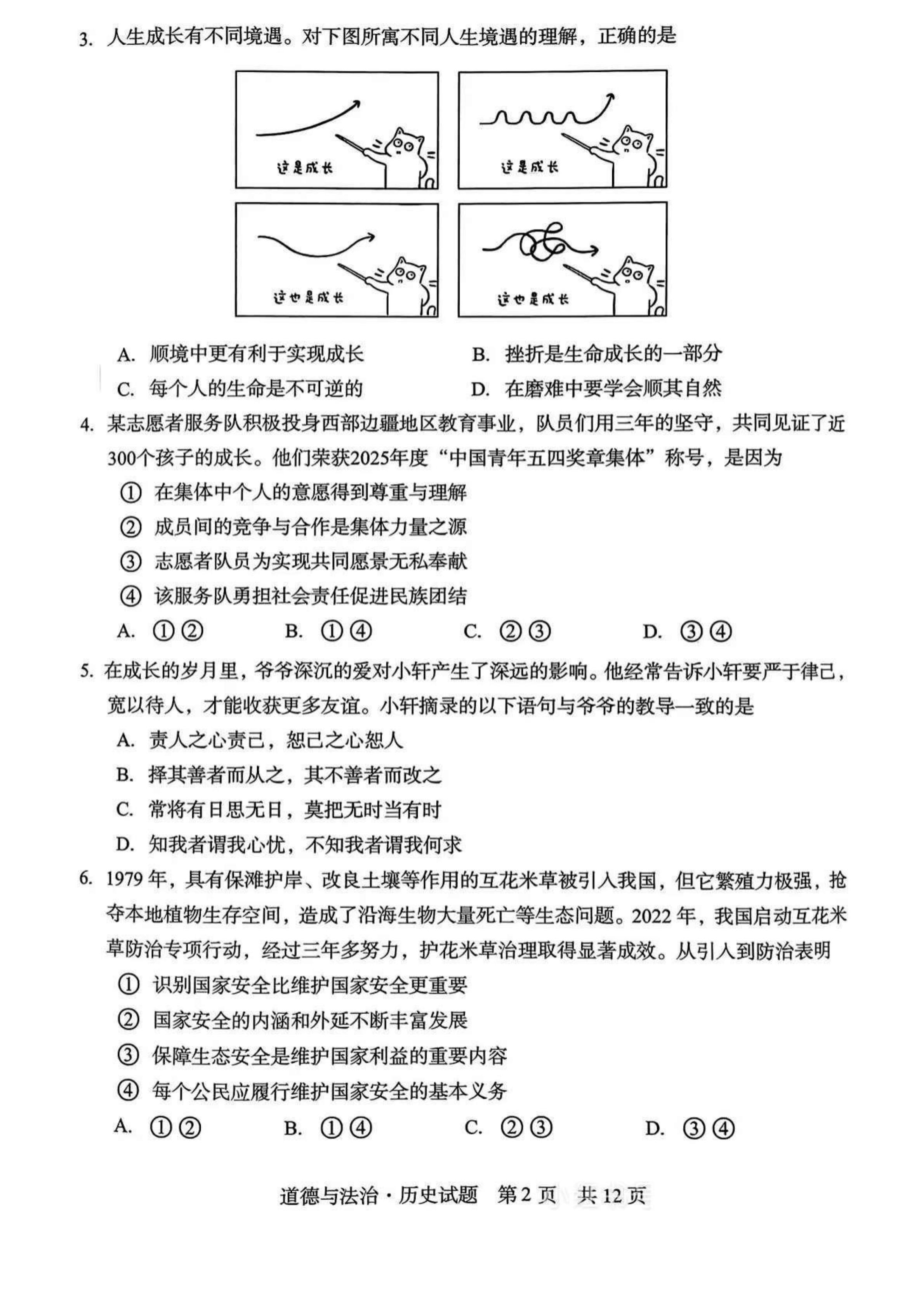 2025年天津中考道法真题试卷及答案解析 2026-03-15 -