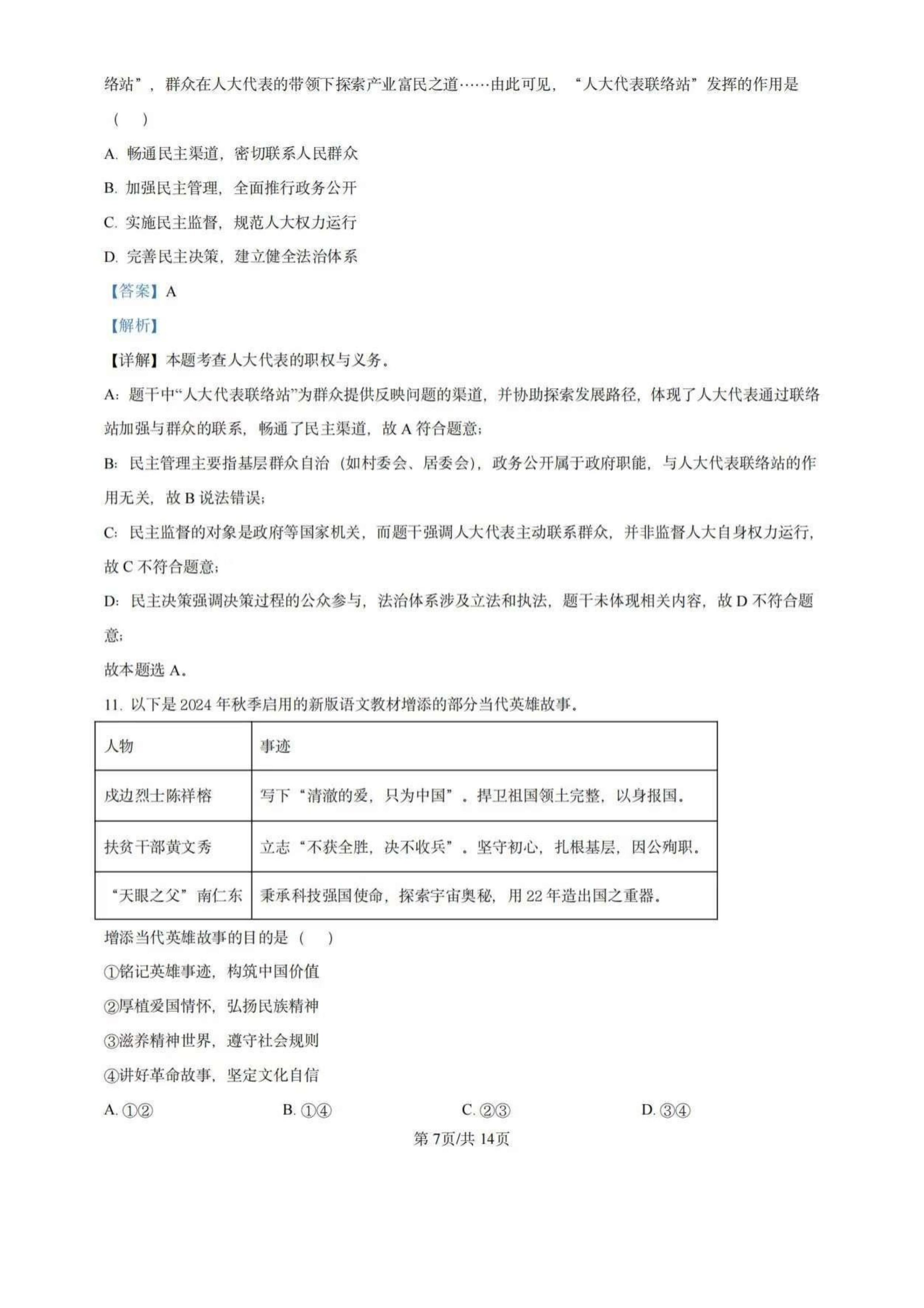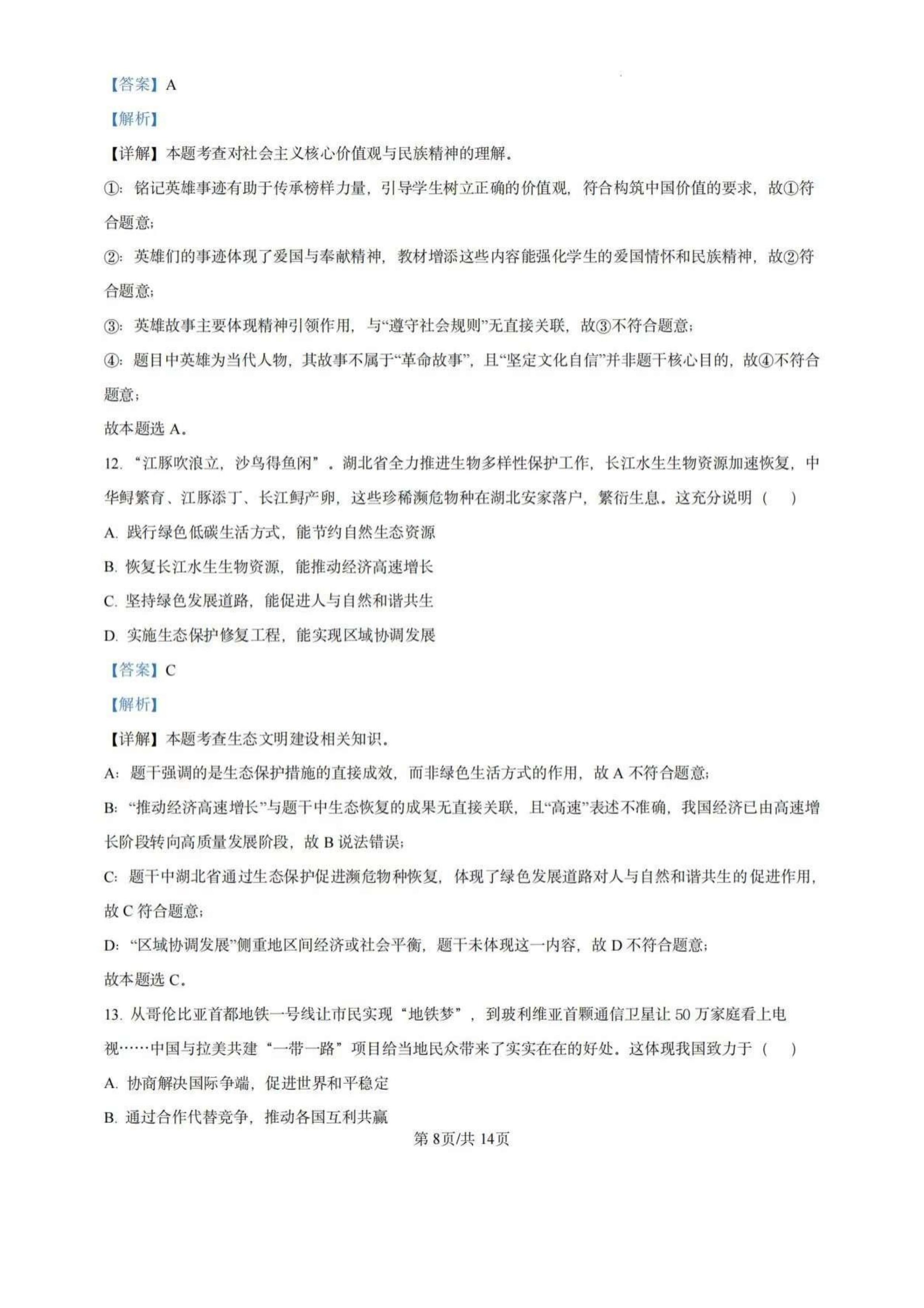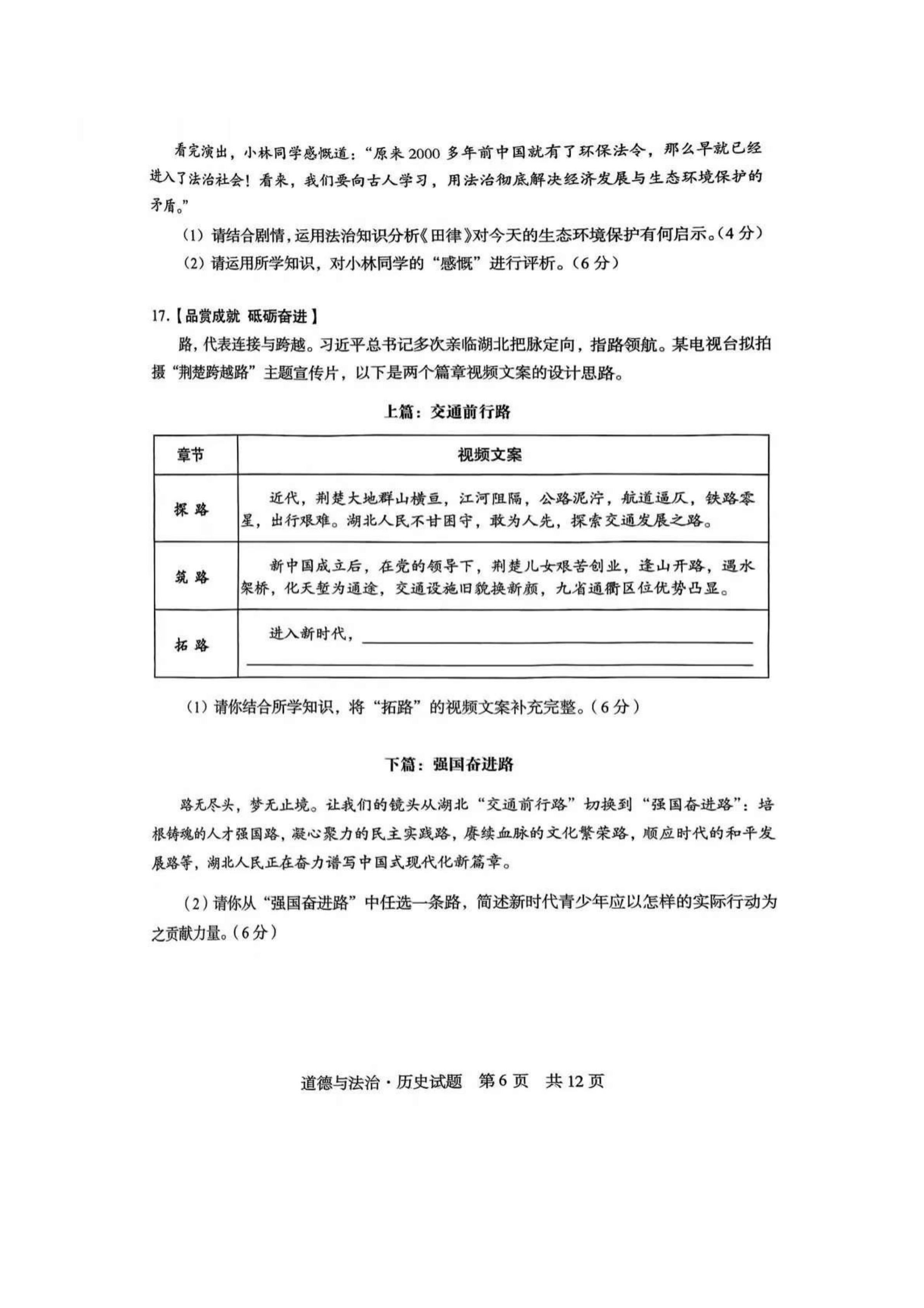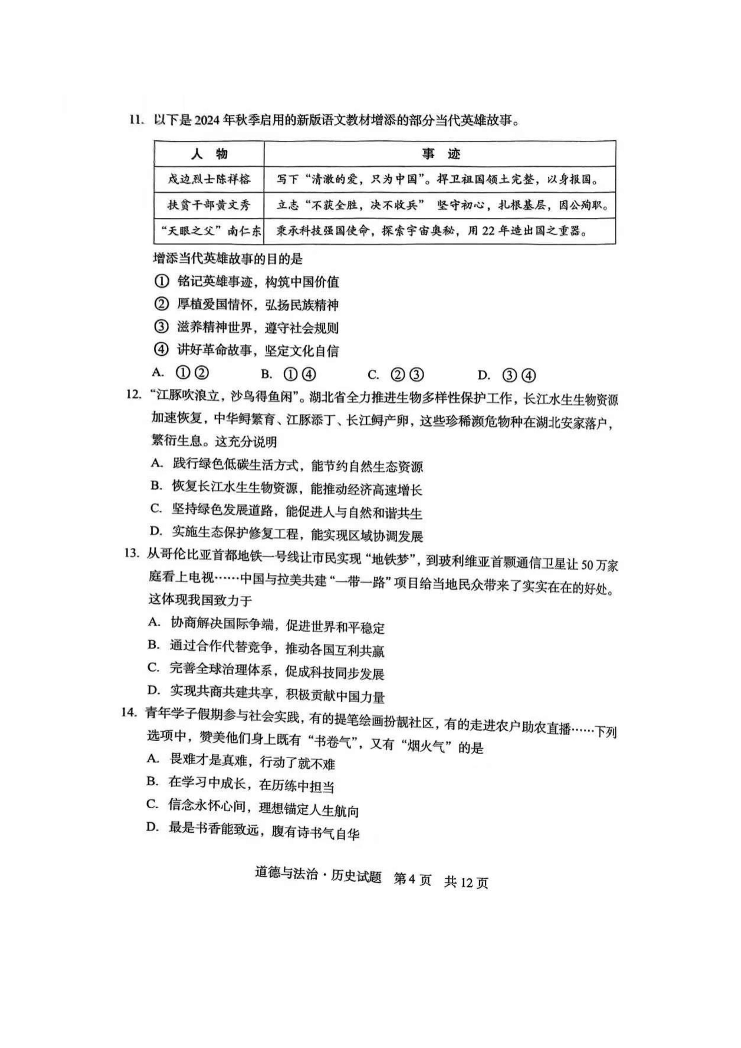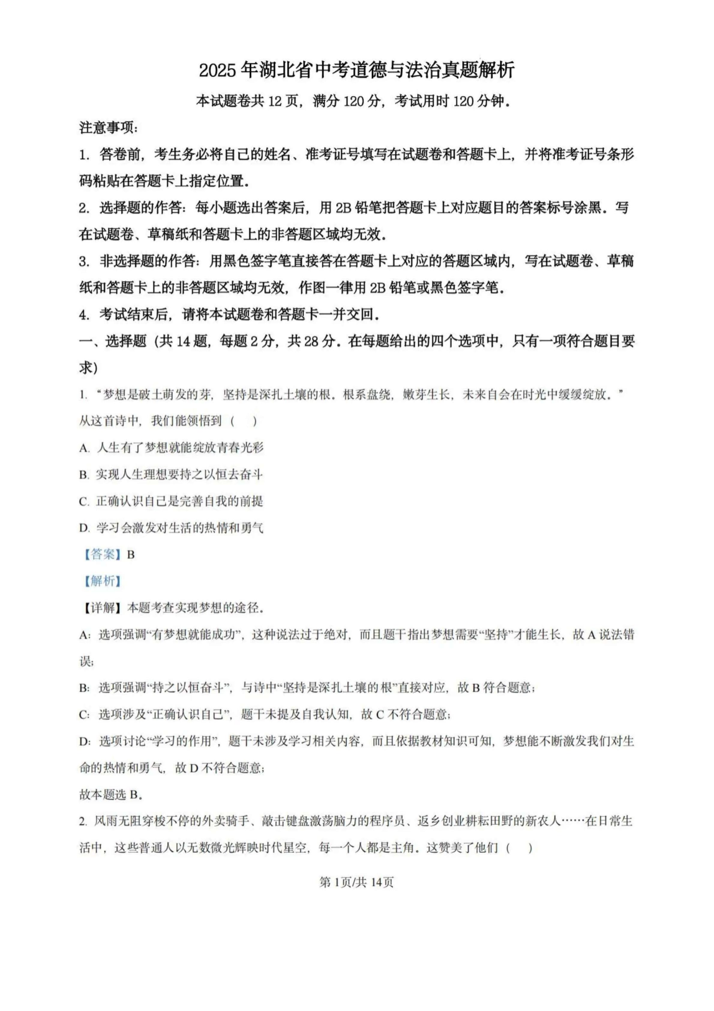 2025年湖北中考道法真题试卷及答案解析