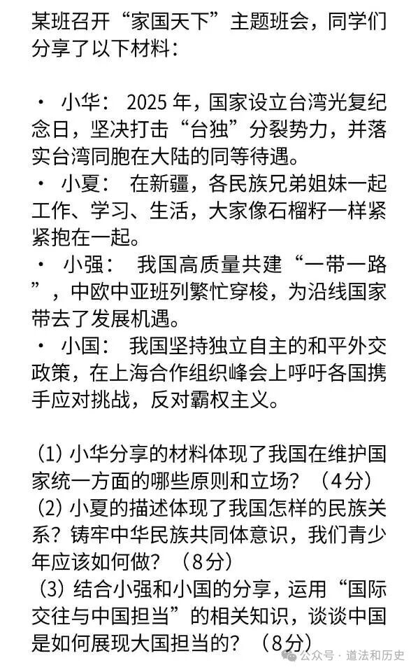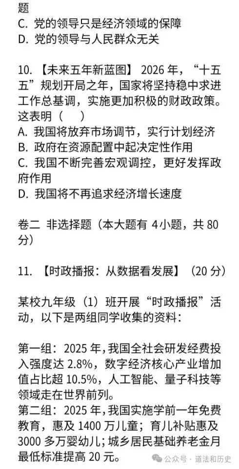 2026中考道法模拟试卷及答案