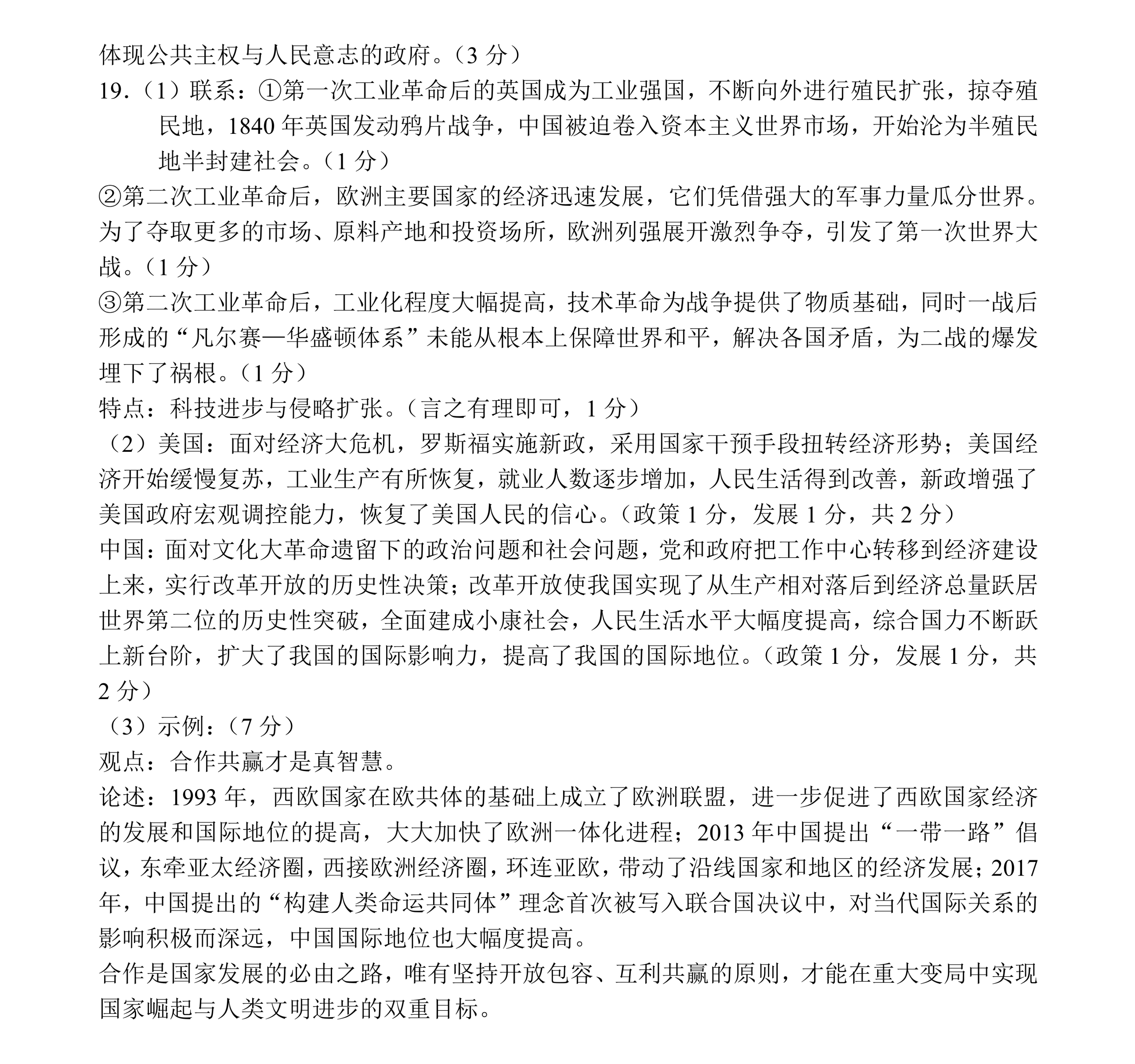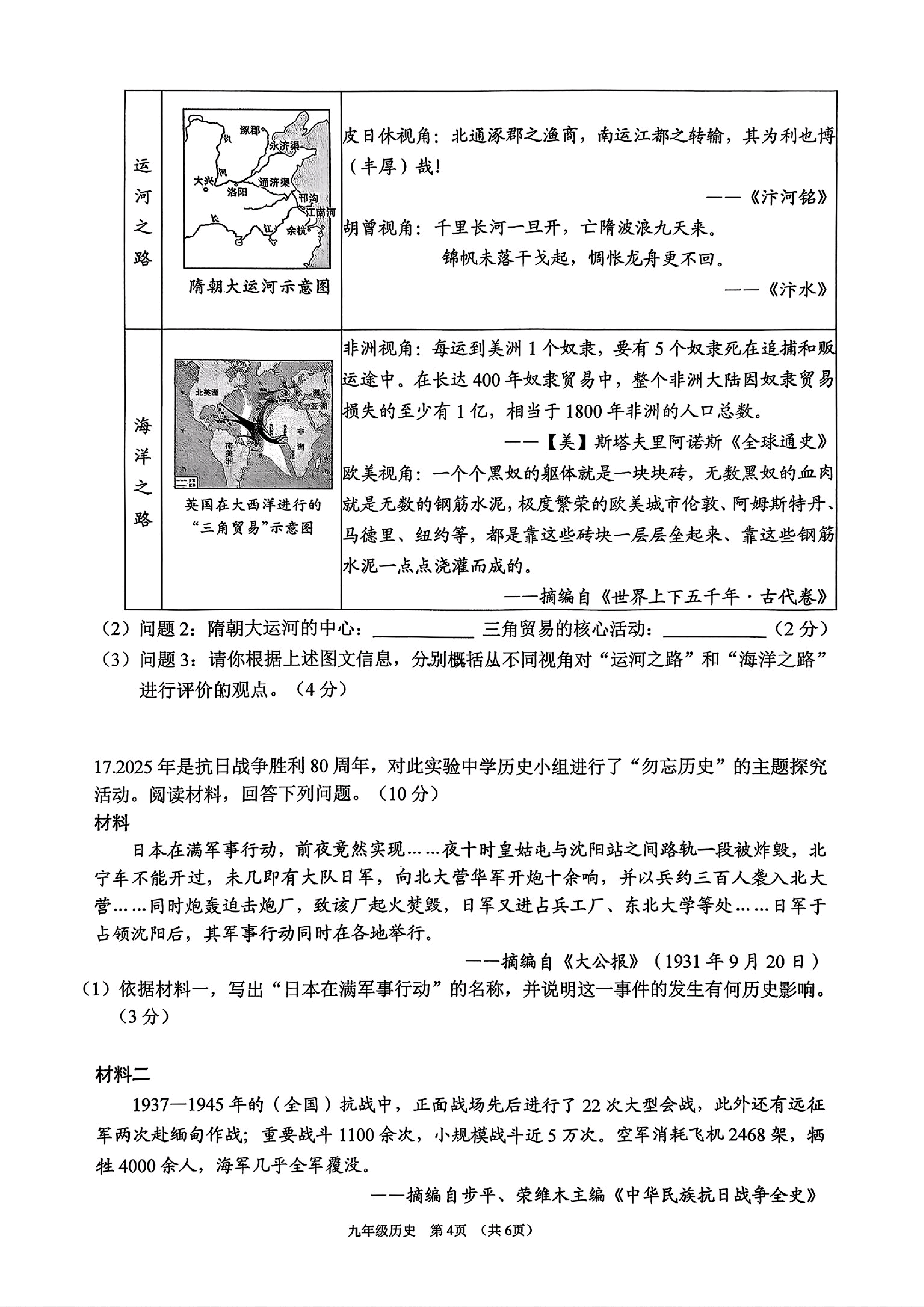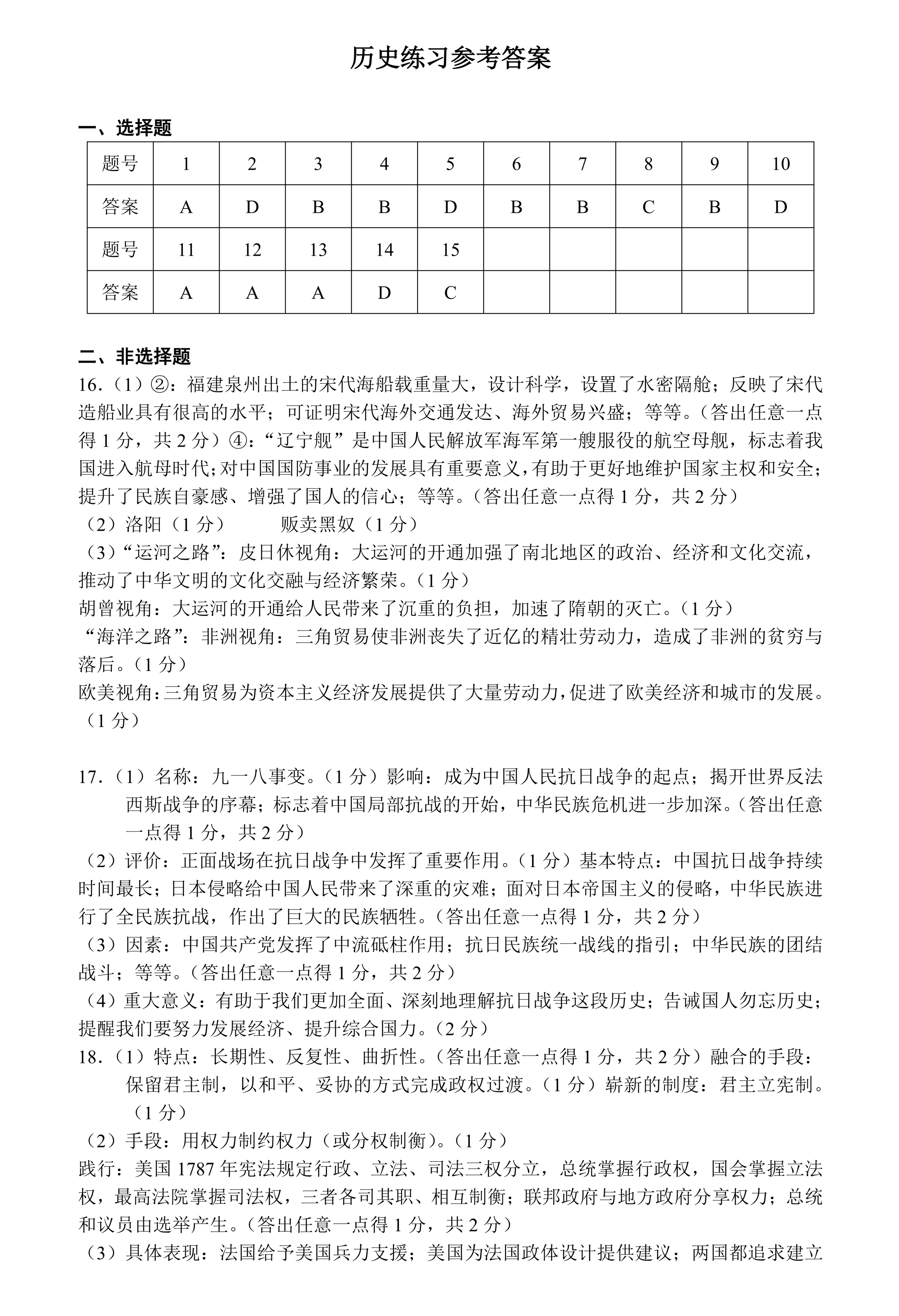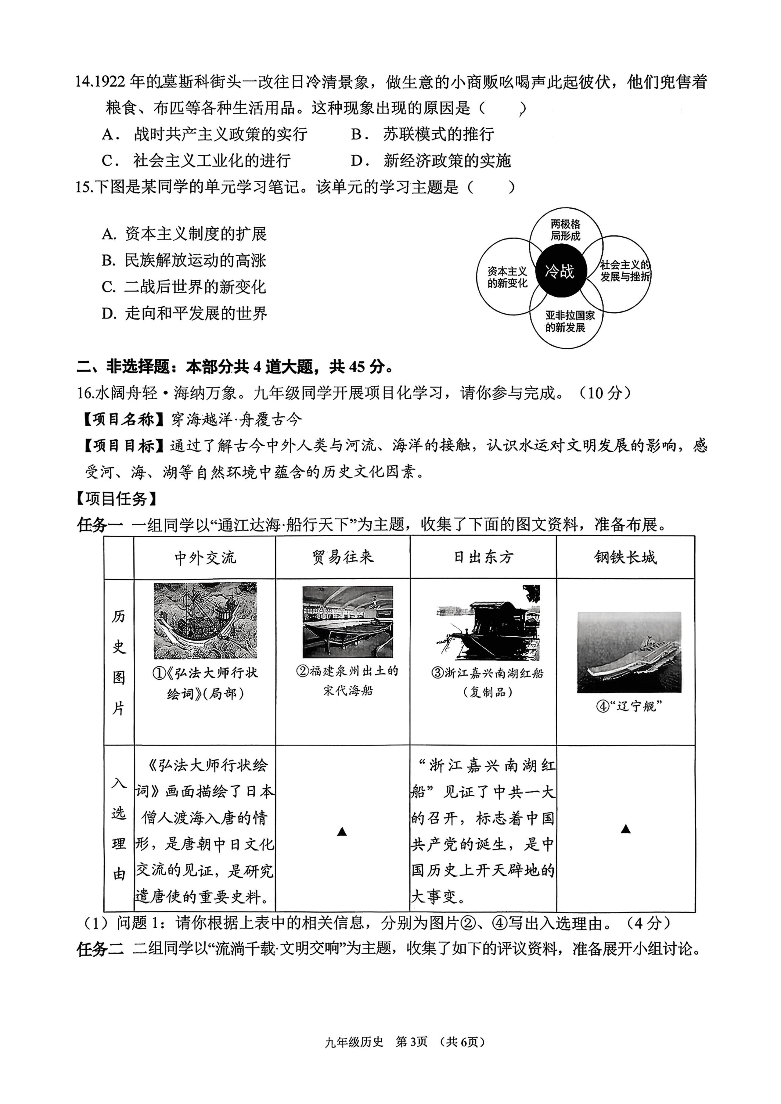 山西2026年中考历史第一次模拟测试题及答案