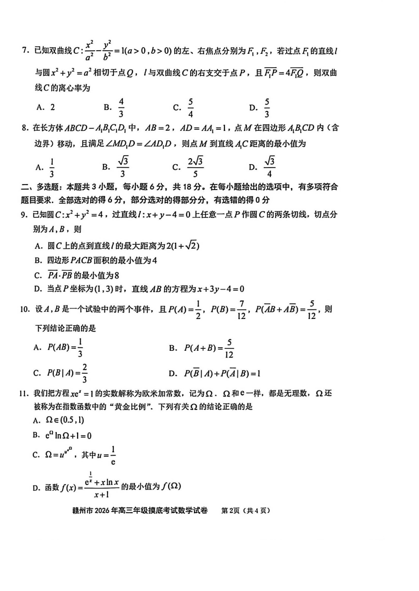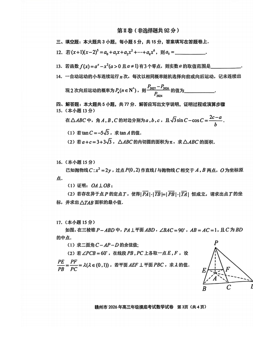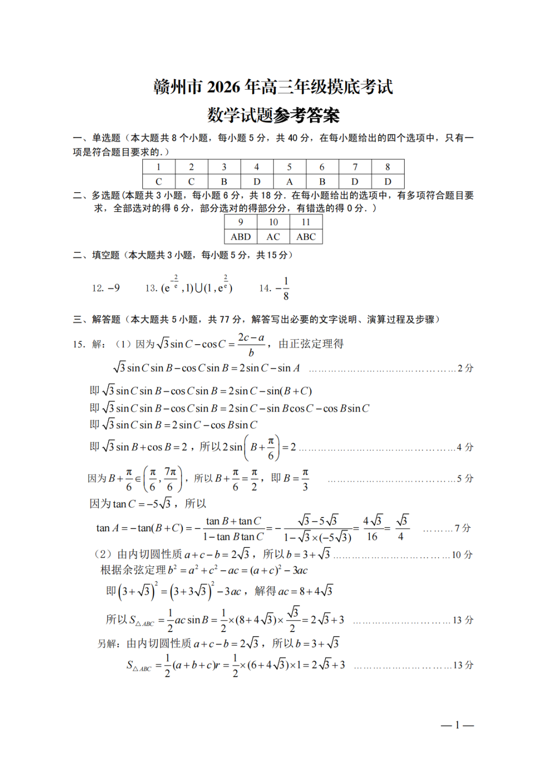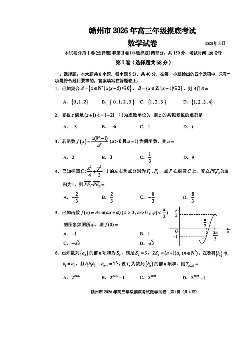 【赣州一模全科】赣州市2026年高三年级3月摸底考试