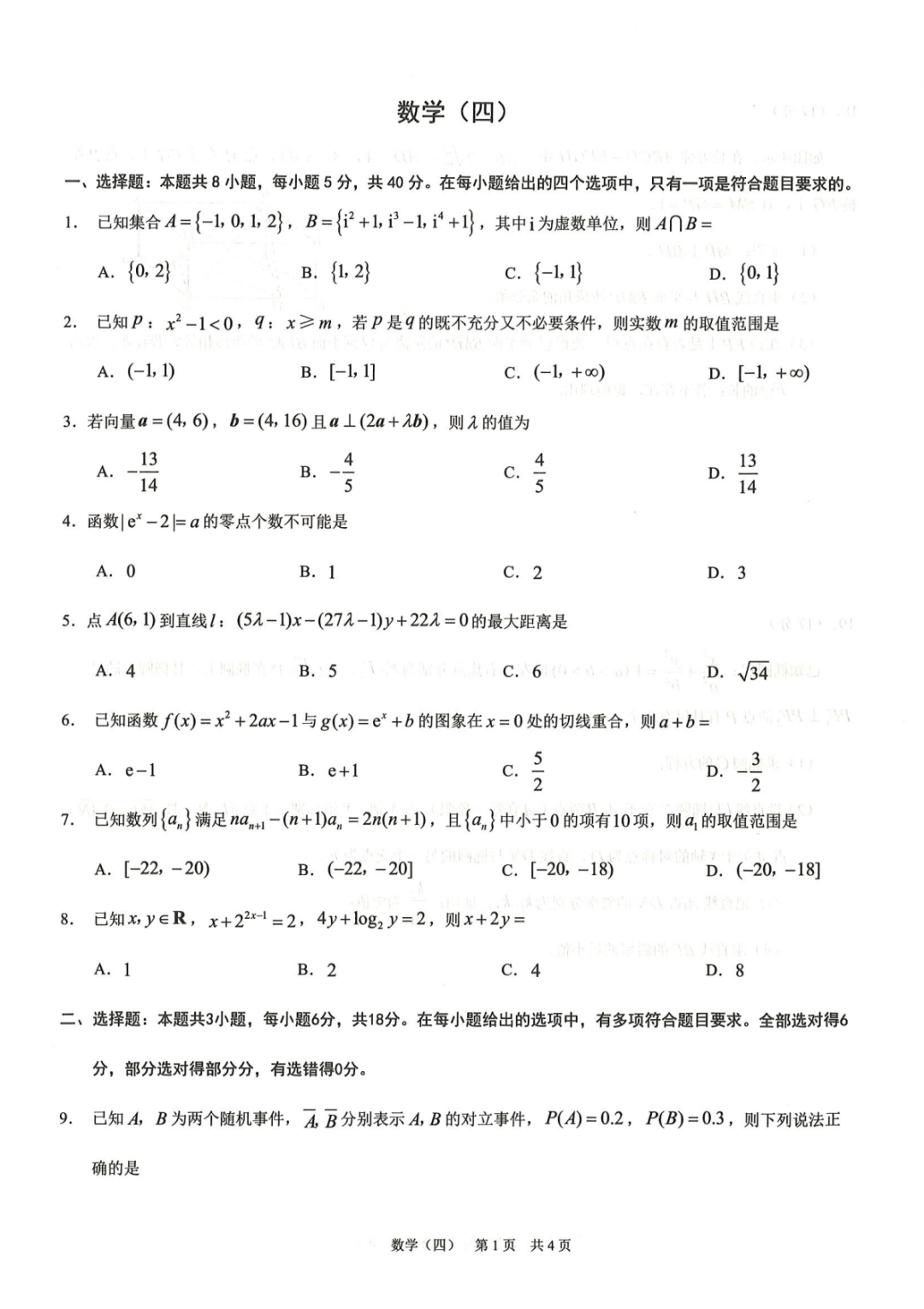 【全科】2026届重庆市康德高考模拟调研卷(四)