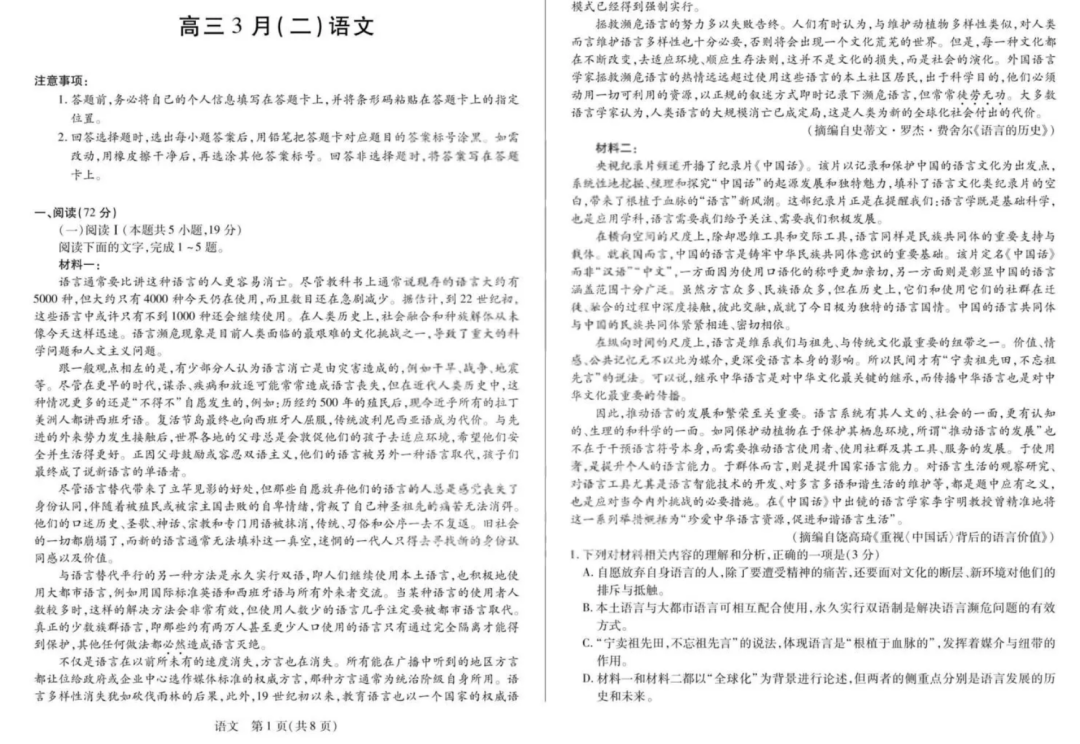 【安徽卷】安徽省合肥八中等部分学校2026届高三年级下学期3月大联考暨模拟预测(3.12-3.13) 全科试题卷+答案