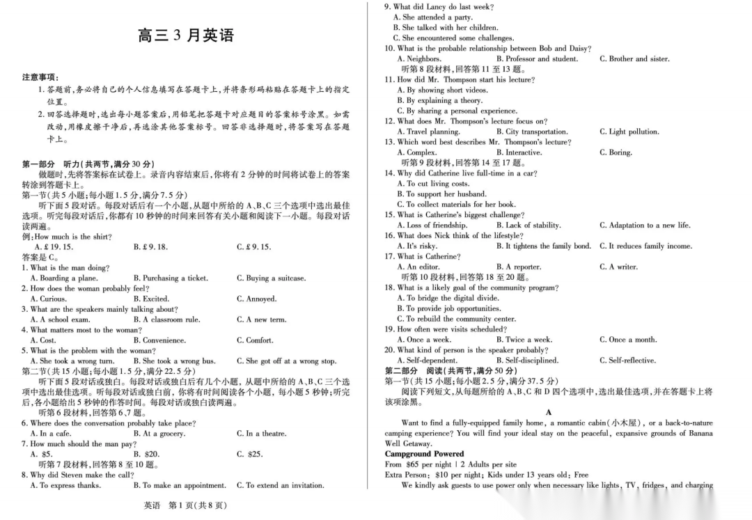 【全科】2026届重庆市康德高考模拟调研卷(三) 【全科】2026届重庆市康德高考模拟调研卷(三)