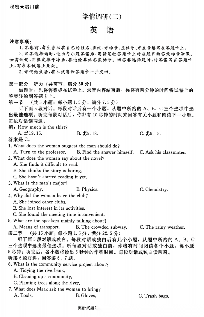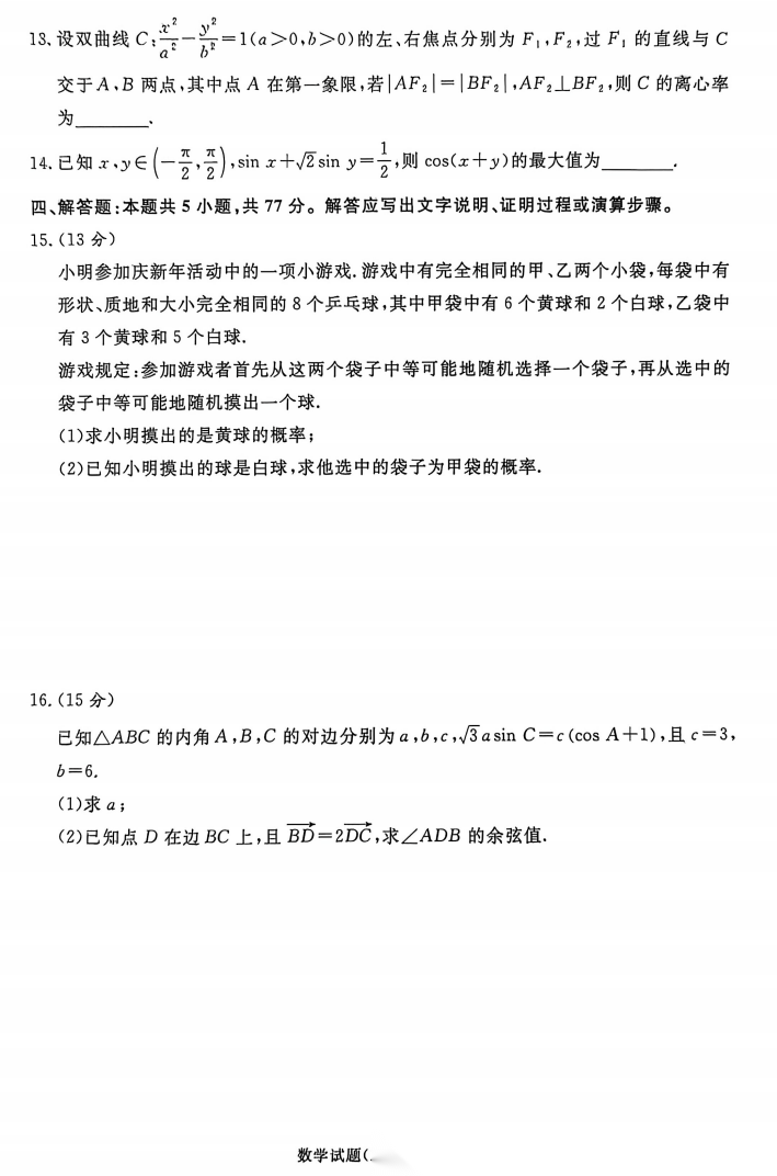 【超清无水印】:高三,湖北省随州市2026届高三下学期二模考试 【超清无水印】:高三,湖北省随州市2026届高三下学期二模考试
