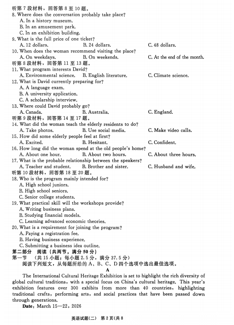 【河南卷】河南省青桐鸣大联考2026届高三下学期学情调研(二)(3.13-3.14) 全科试题卷+答案
