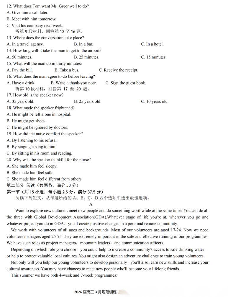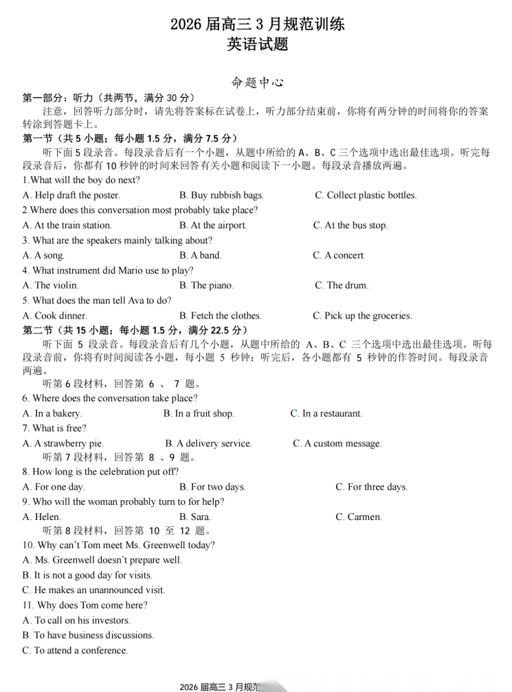 【超清无水印】:高三,河南省豫西北教研联盟(平许济洛)2026届高三下学期3月第三次质量检测(全) 【超清无水印】:高三,河南省豫西北教研联盟(平许济洛)2026届高三下学期3月第三次质量检测(全)