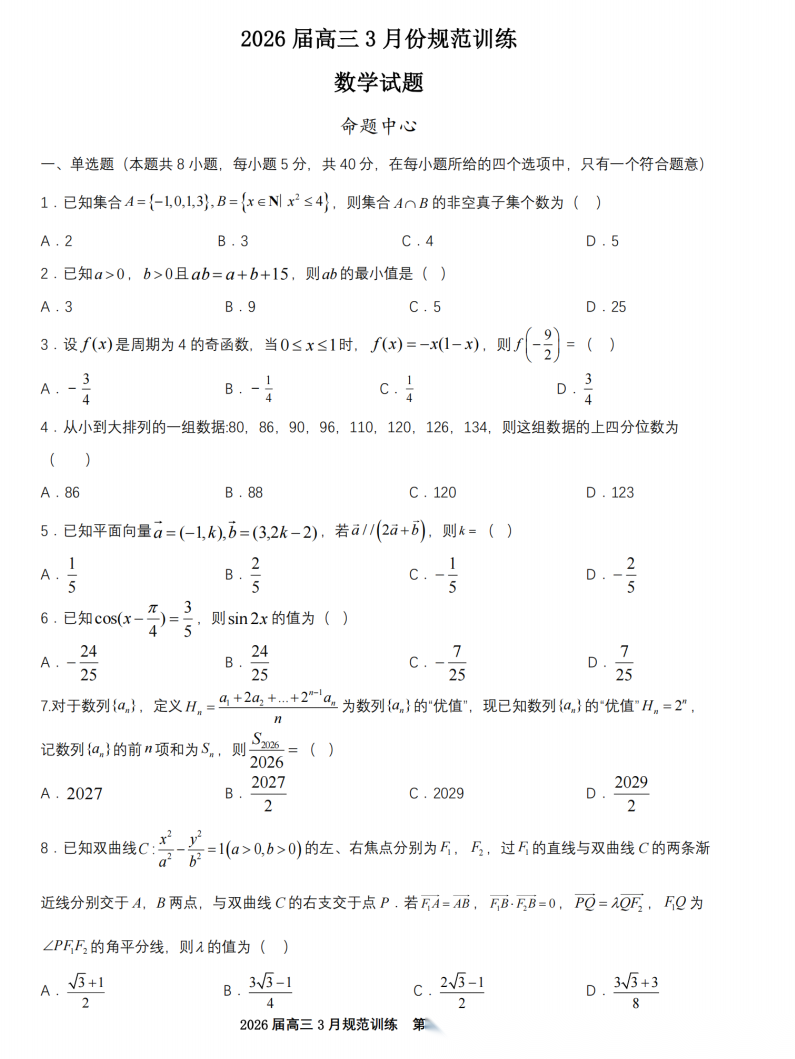 【超清无水印】:高三,山西大学附属中学校2025-2026学年高三年级第二学期3月模块诊断 【超清无水印】:高三,山西大学附属中学校2025-2026学年高三年级第二学期3月模块诊断