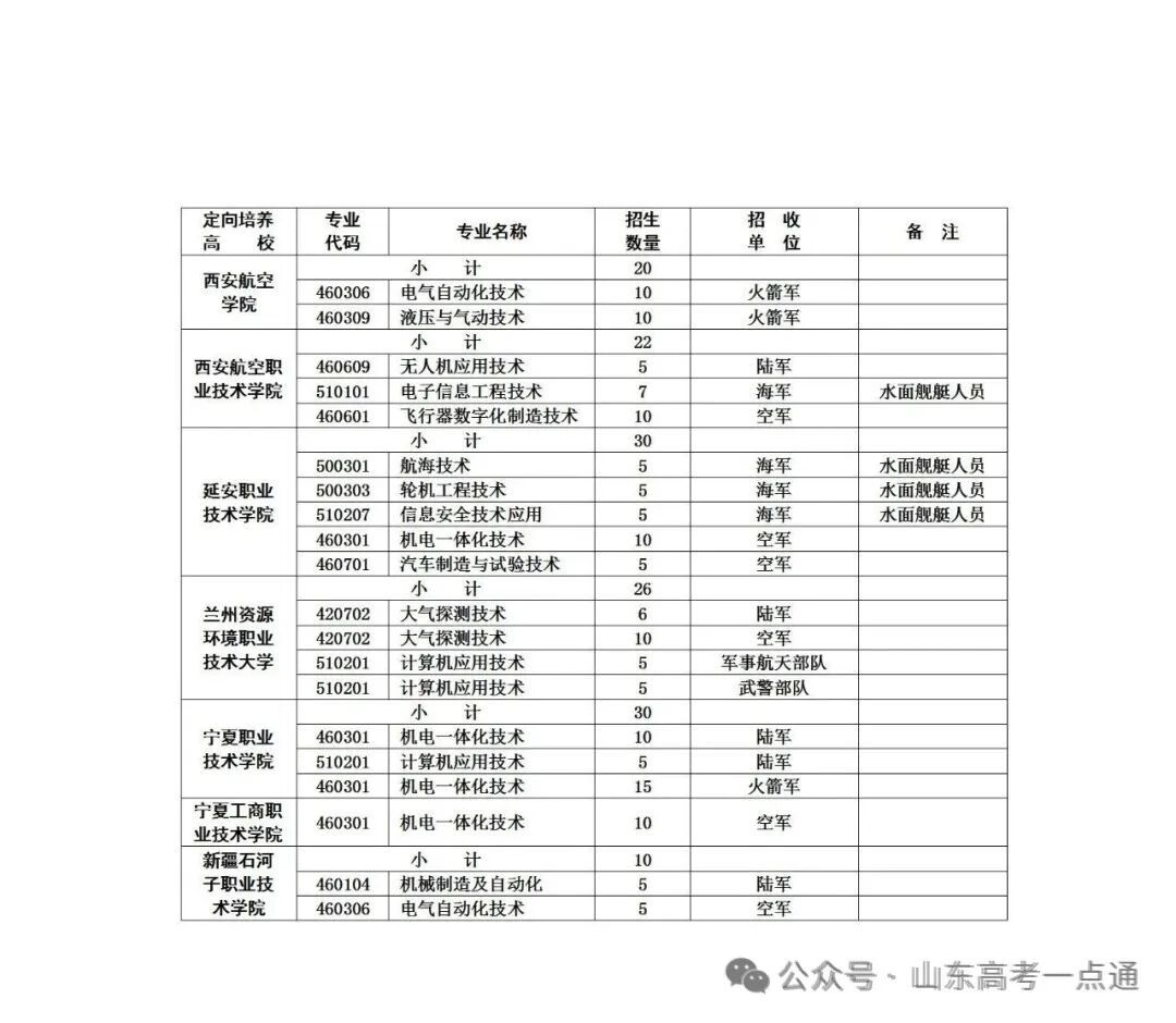 目前,2026年的政策还未发布,根据此前山东省教育招生考试院发布的《关于做好2025年招收定向培养军士工作的通知》(点击查看),我们进行了梳理。2026年的具体要求和时间安排以考试院发布的最新政策为准。