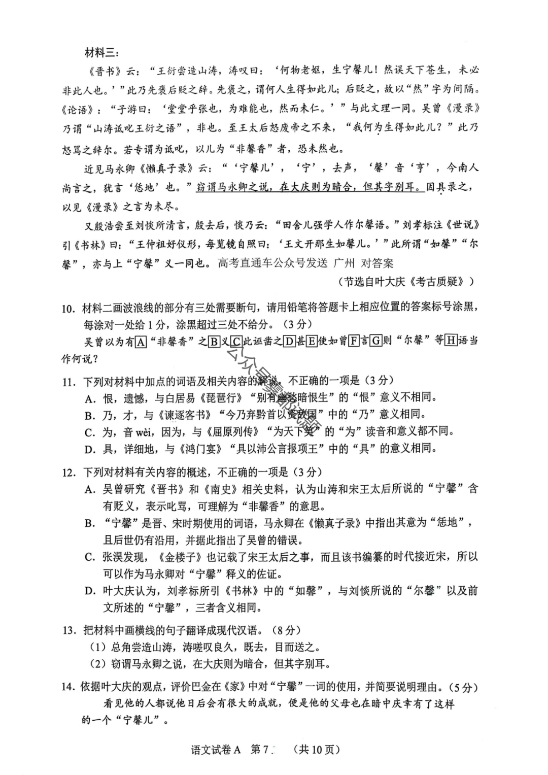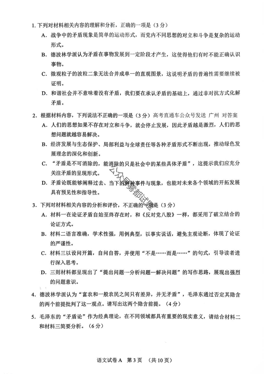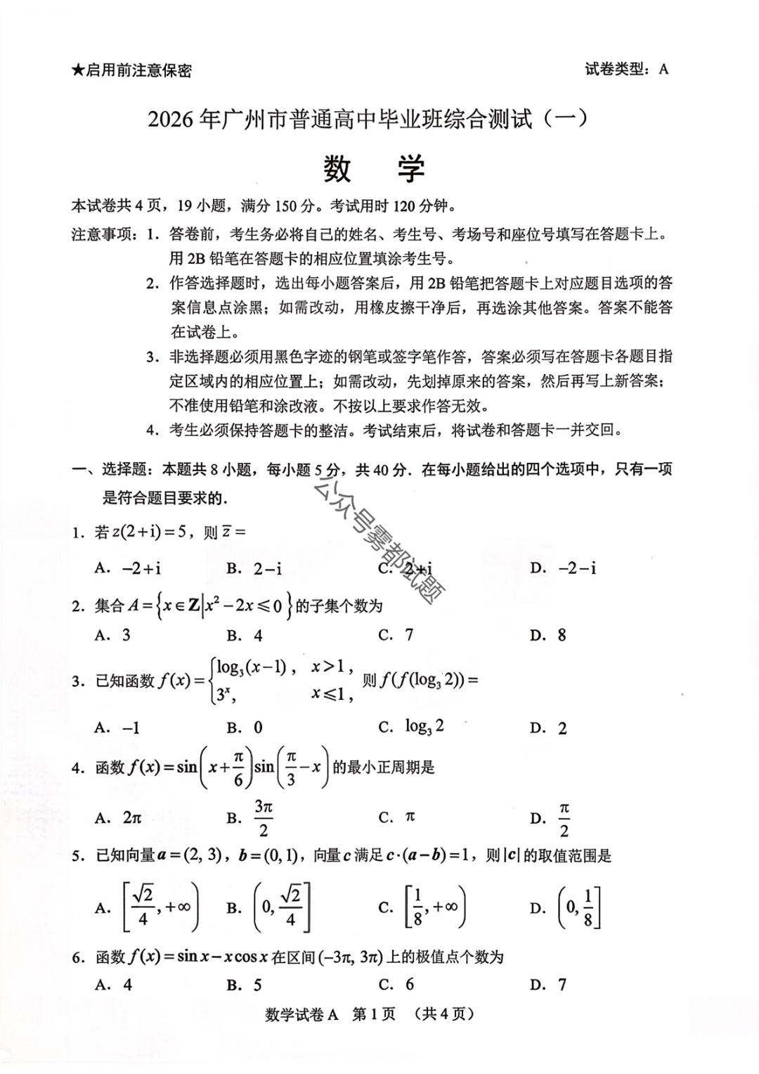 【广州一模】2026年广州市普通高中毕业班综合测试(一)317汇总