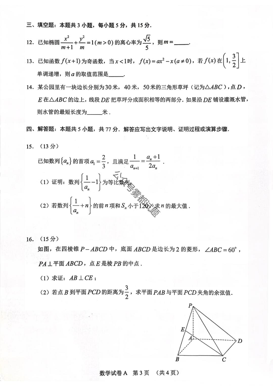 福建省泉州市2026届高中毕业班模拟考试(一) 福建省泉州市2026届高中毕业班模拟考试(一)