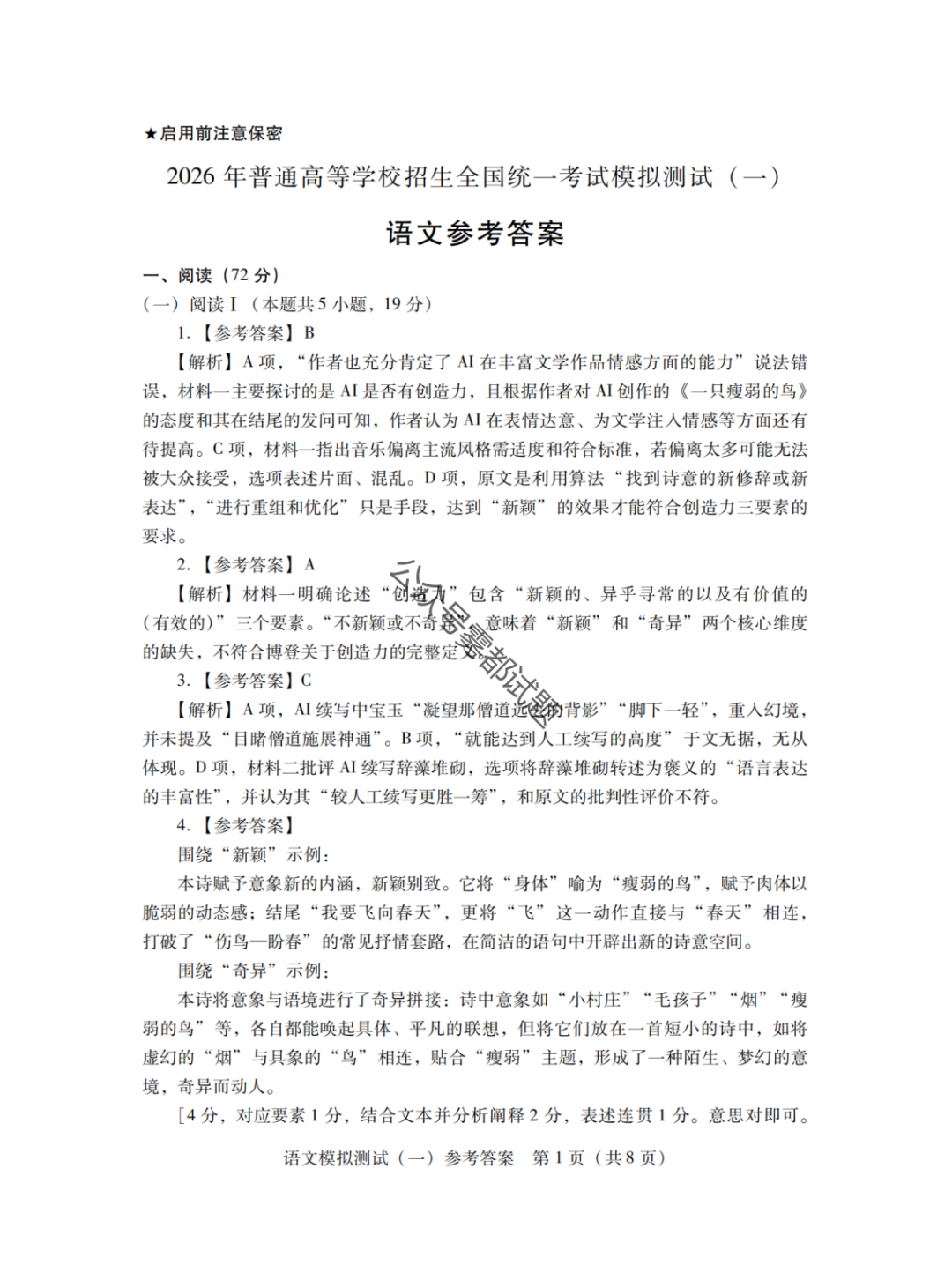 【广东一模】2026年广东省普通高等学校招生全国统一考试模拟测试(一)317汇总