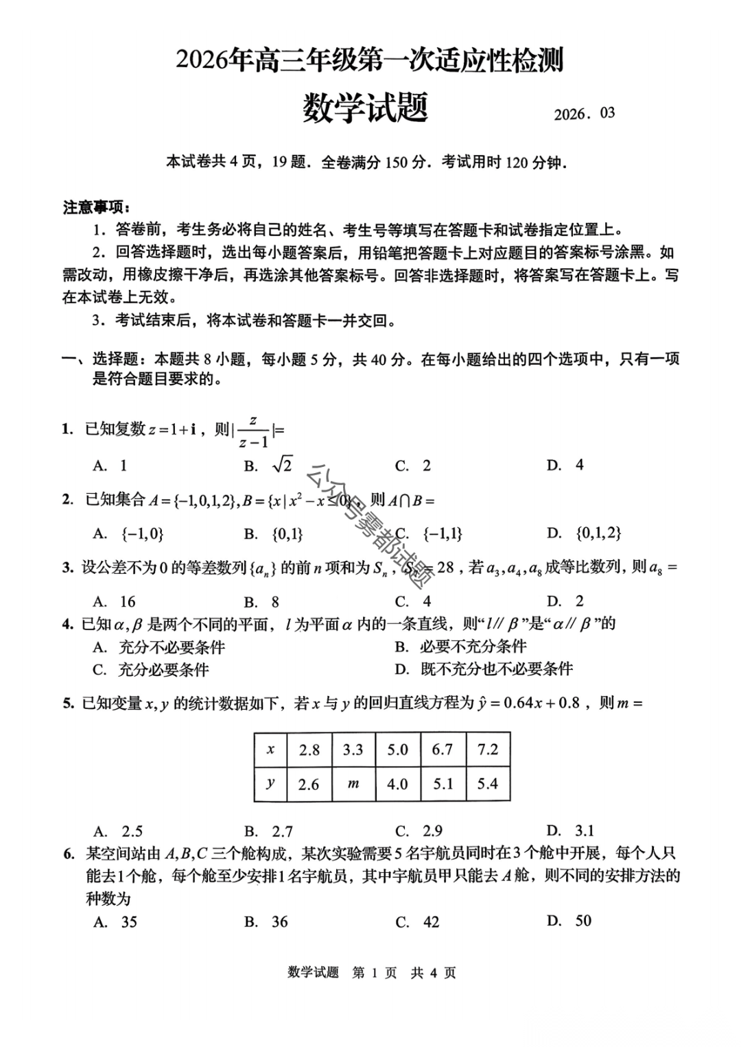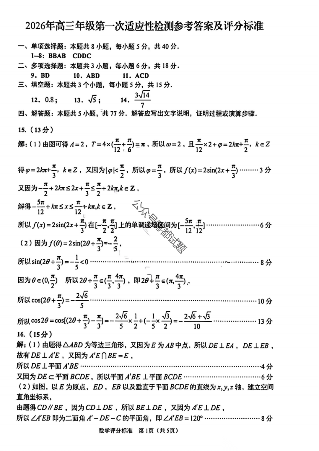 德阳市2026届高三第二次诊断考试(德阳二诊3.16汇总) 德阳市2026届高三第二次诊断考试(德阳二诊3.16汇总)
