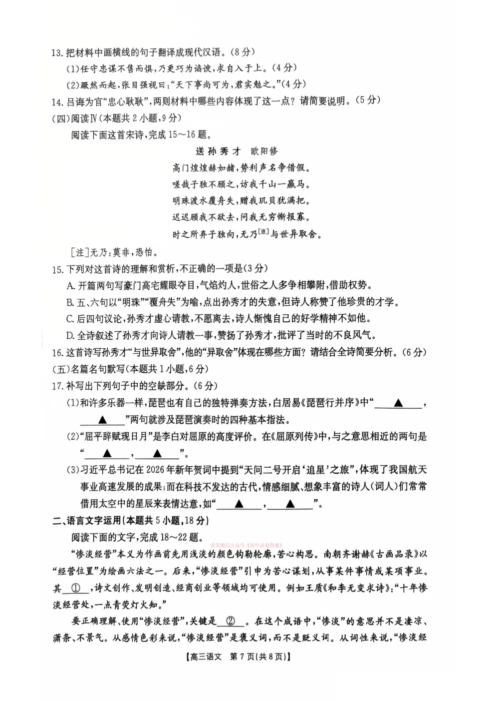 【超清无水印】:高三,安徽省合肥市一六八中学2026届高三3月份规范训练 【超清无水印】:高三,安徽省合肥市一六八中学2026届高三3月份规范训练