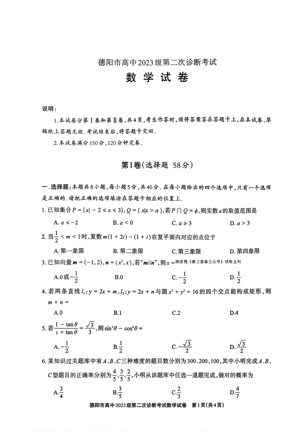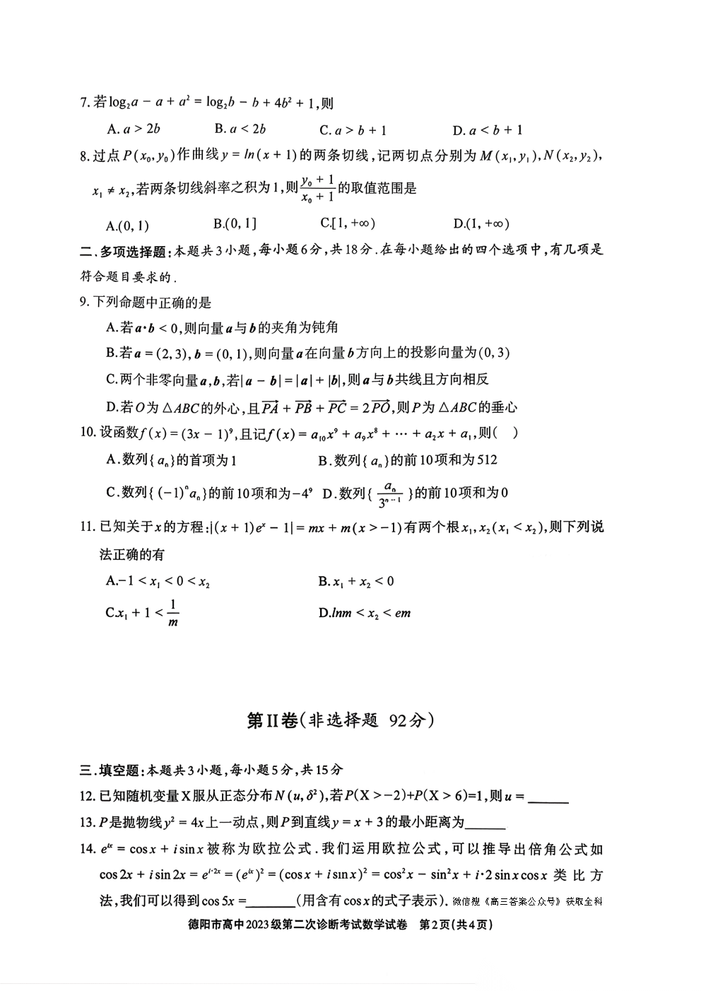 【宜宾二诊】宜宾市高三2023级第二次诊断性测试 【宜宾二诊】宜宾市高三2023级第二次诊断性测试