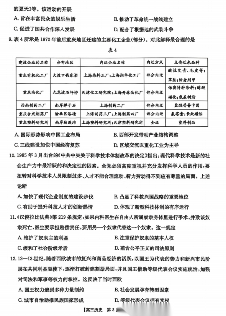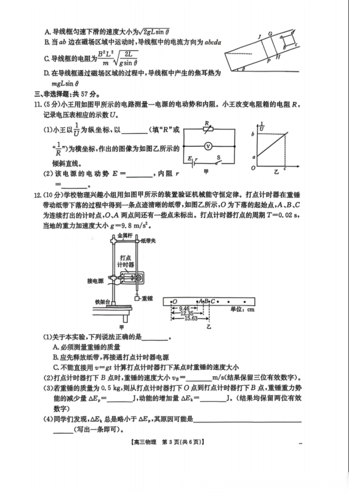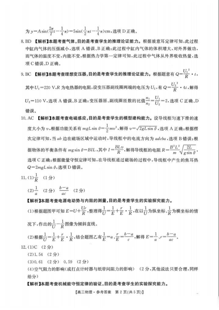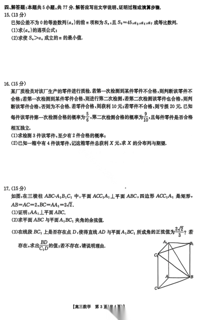 2026安徽高三3月联考答案 2026安徽高三3月联考答案
