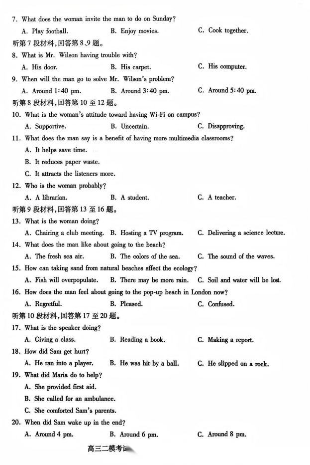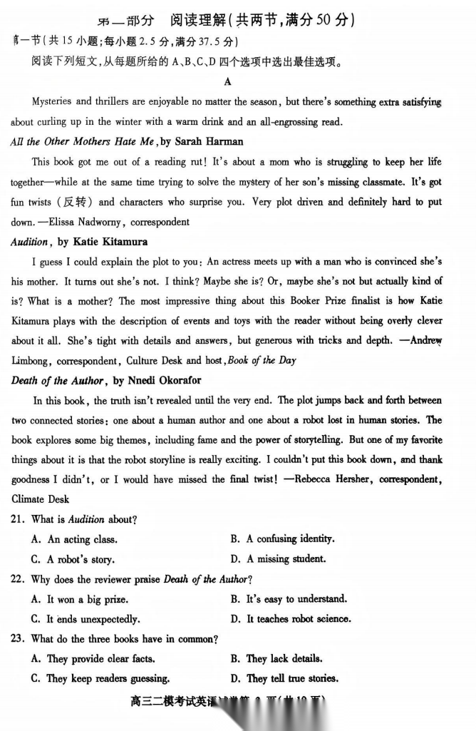 2026安徽高三3月联考答案 2026安徽高三3月联考答案