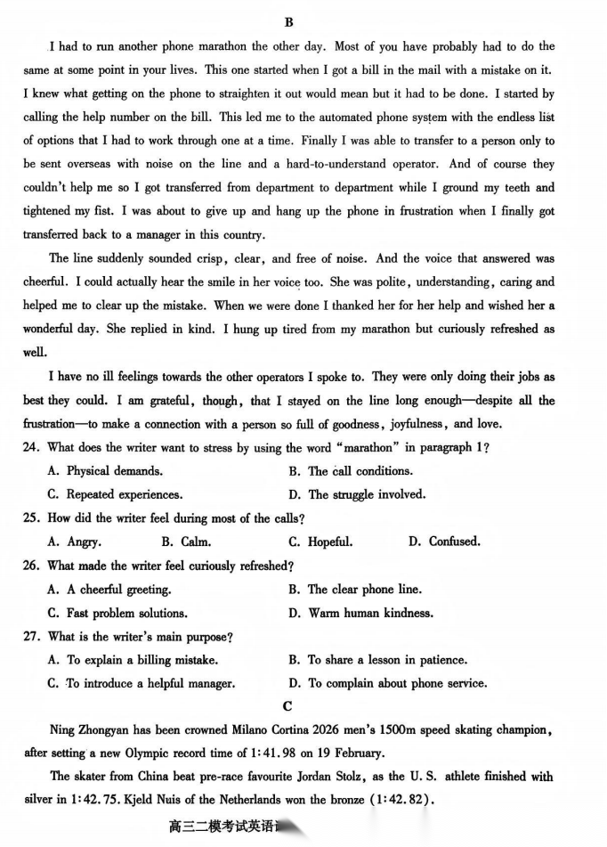 【西北卷】【陕西卷】陕西省铜川市2026届高三年级模拟预测(二)(铜川二模)(3.16-3.17) 全科试题卷(缺化学)+答案 【西北卷】【陕西卷】陕西省铜川市2026届高三年级模拟预测(二)(铜川二模)(3.16-3.17) ...