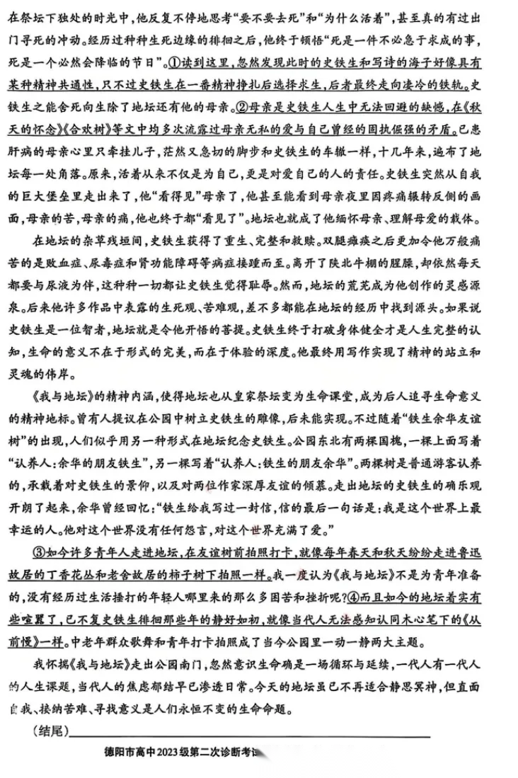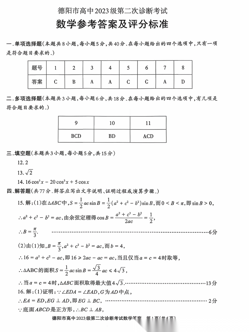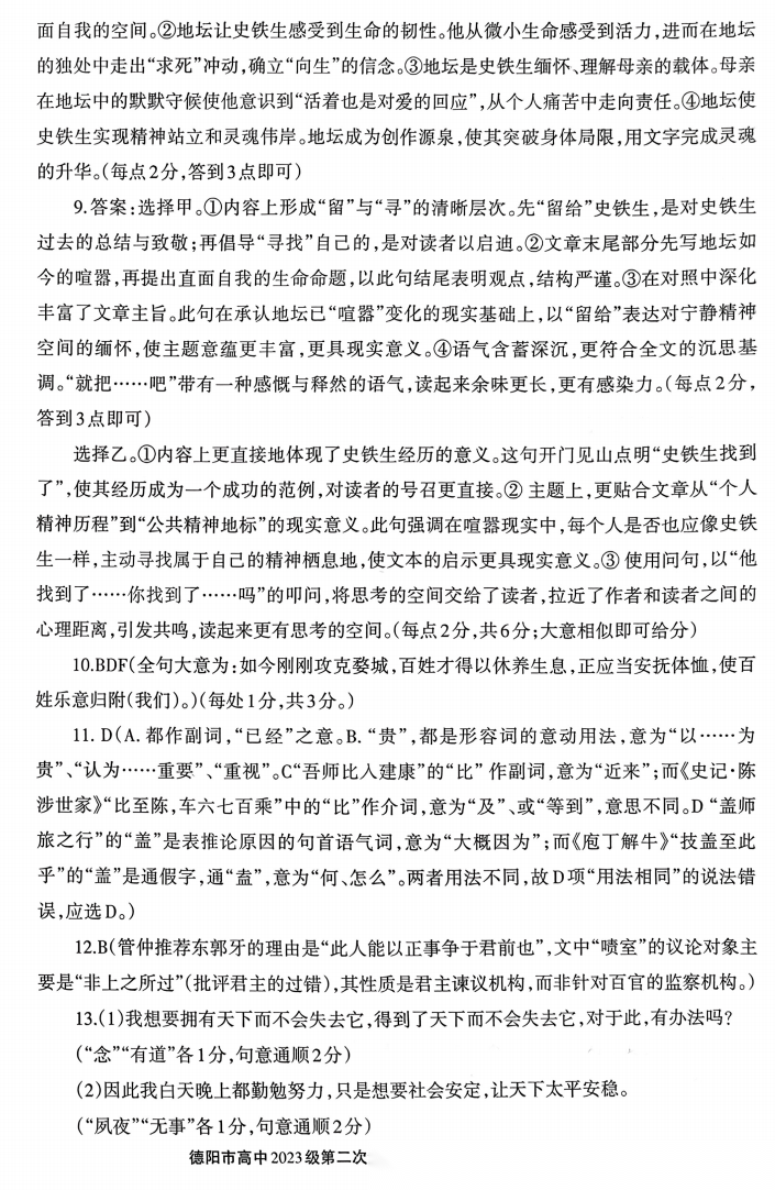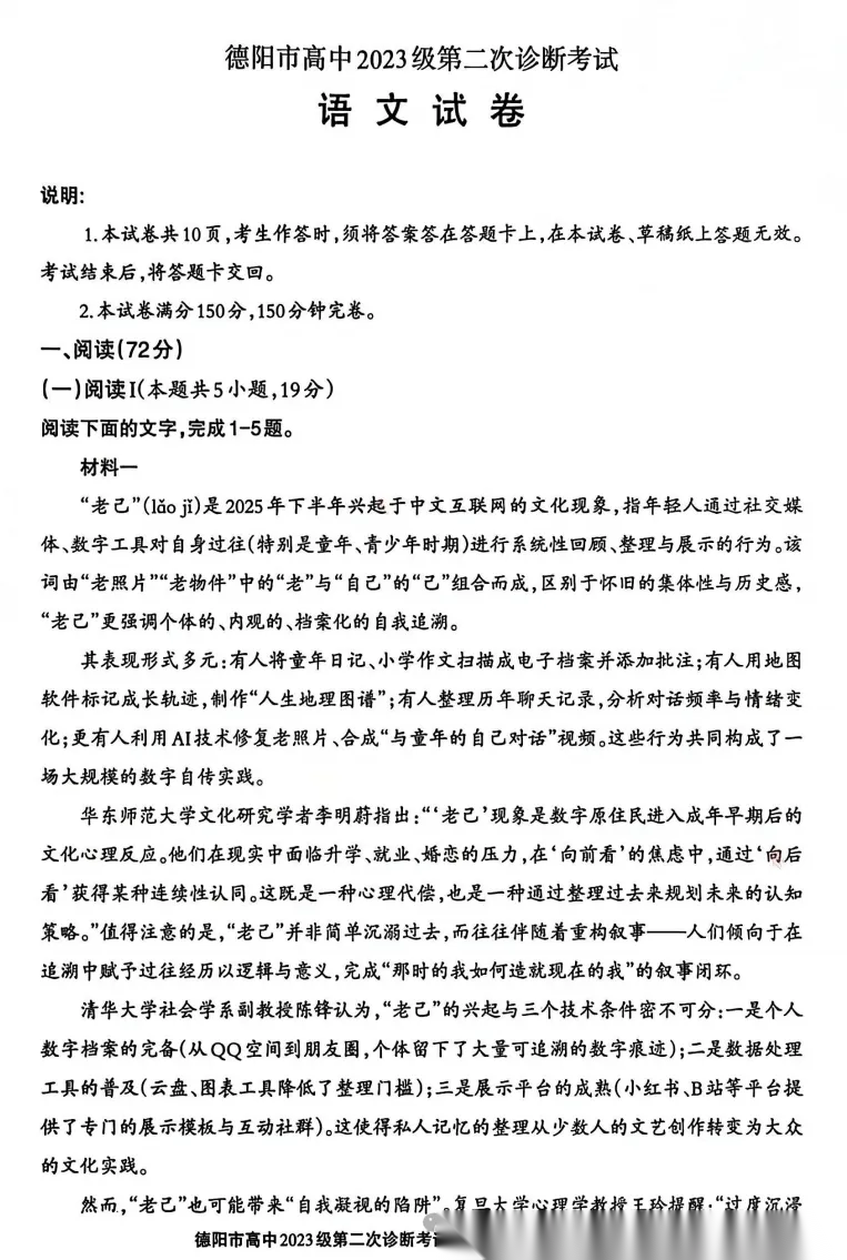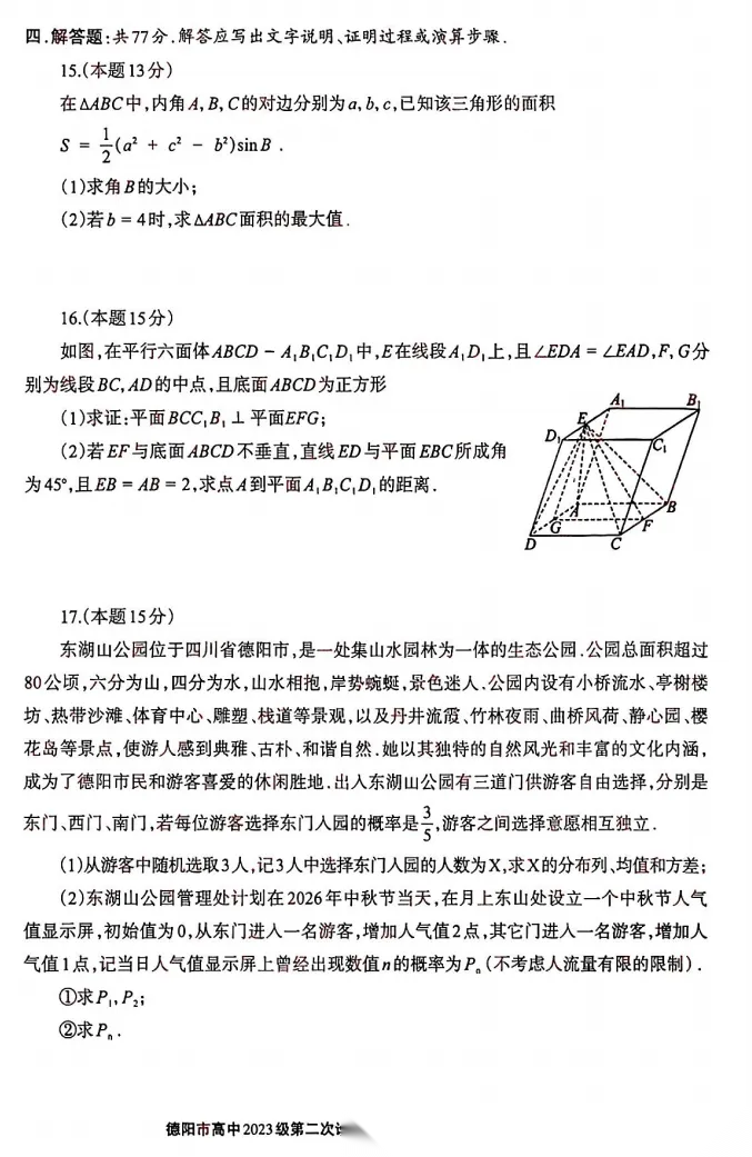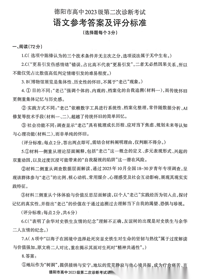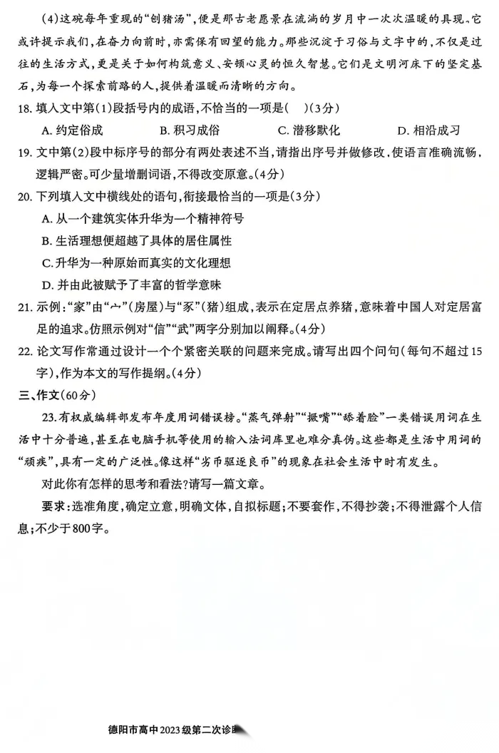 【四川卷】四川省德阳市2023级(2026届)高三年级第二次诊断考试(德阳二诊)(3.16-3.18) 数学语文历史试题卷+答案