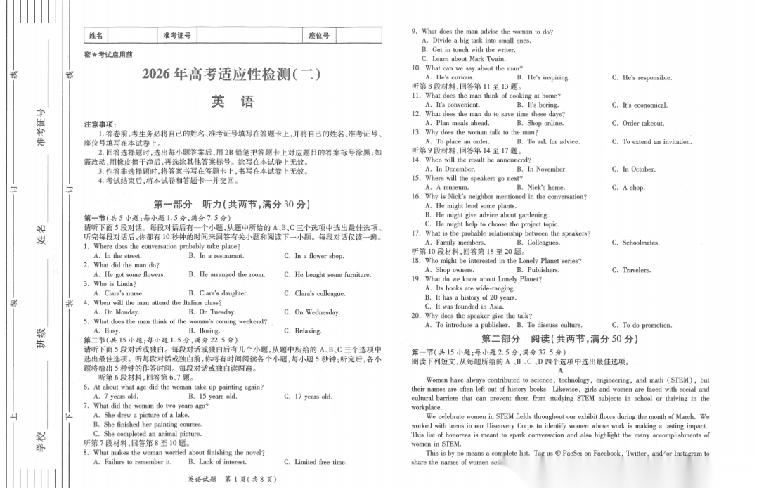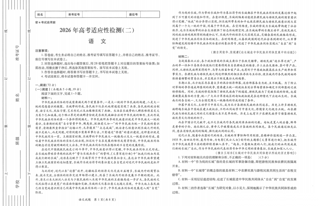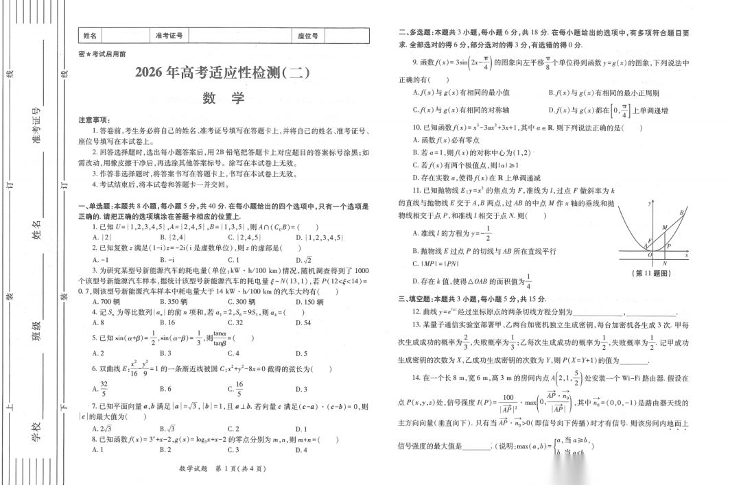 【西北卷】【陕西卷】陕西省2026年高考适应性检测(二)(陕西二模)(3.16-3.17) 全科试题卷+答案(答案明日更新)