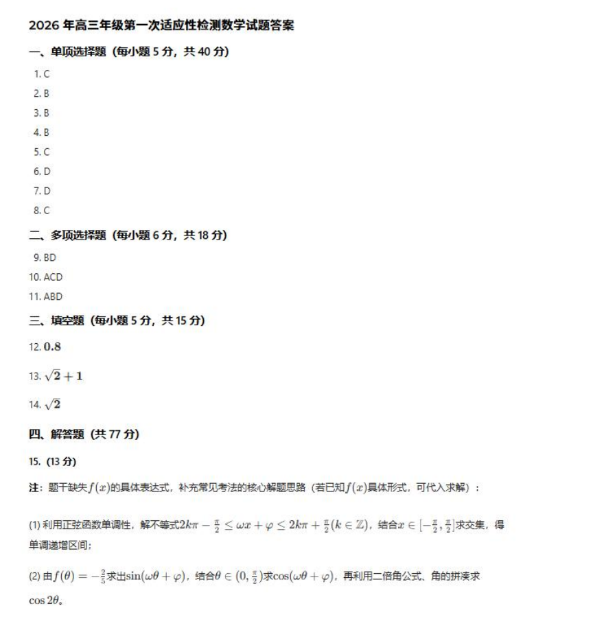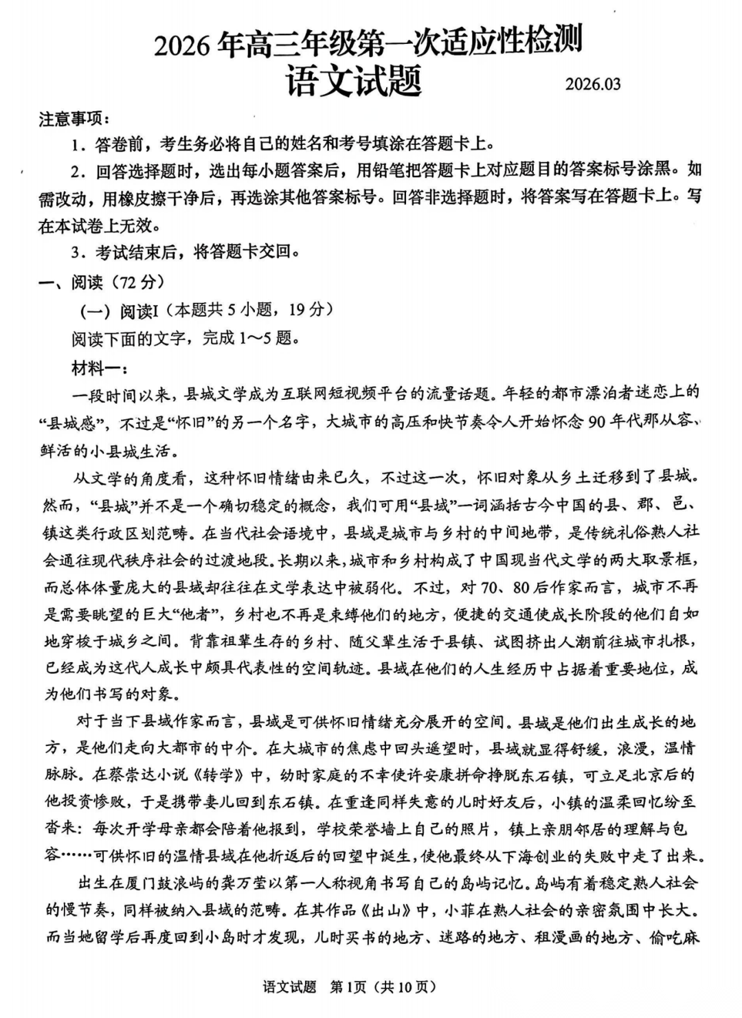【山东卷】山东省青岛市2026年高三年级第一次适应性检测(青岛一模)(3.16-3.18) 数学语文试题卷+答案