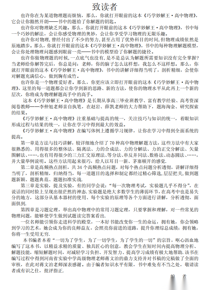 【高中物理】【高考物理】高中物理巧学妙解王---快速提高物理成绩的奇书(李仲旭,赵岩,薛凯编著)(289页完整版)