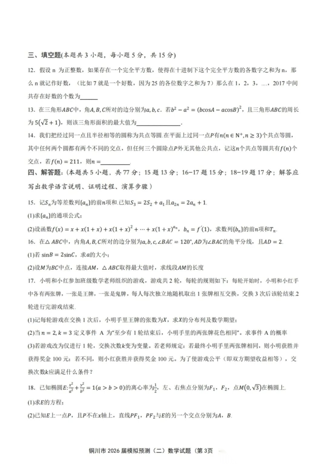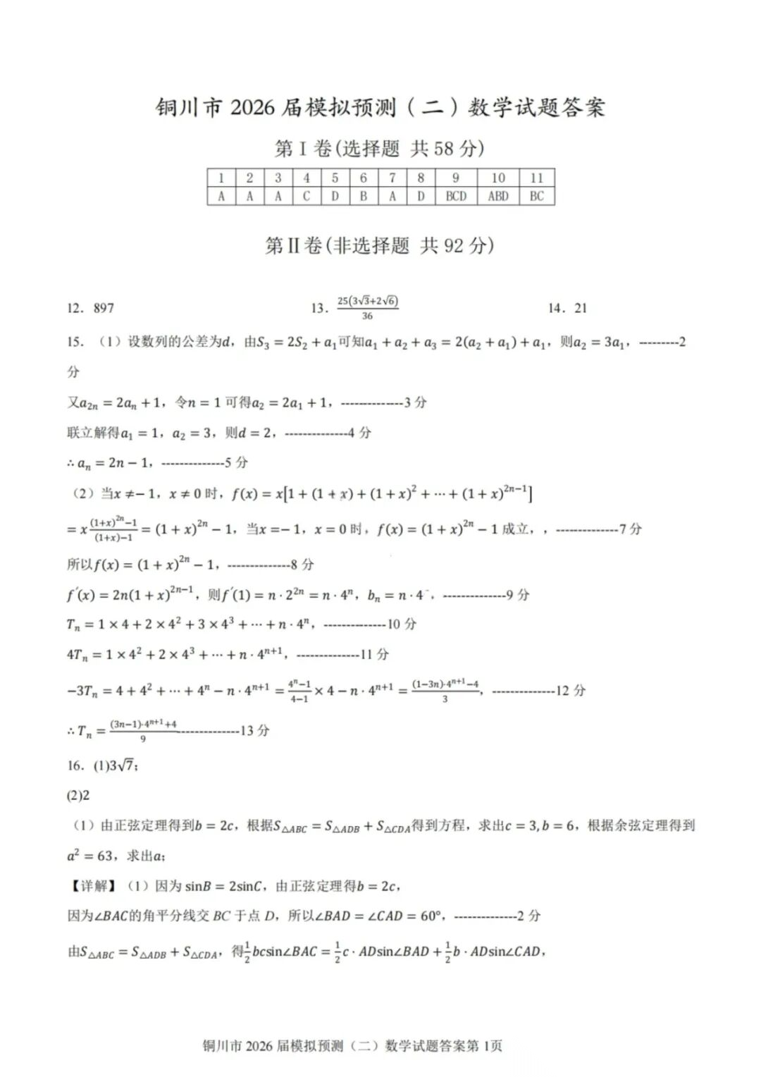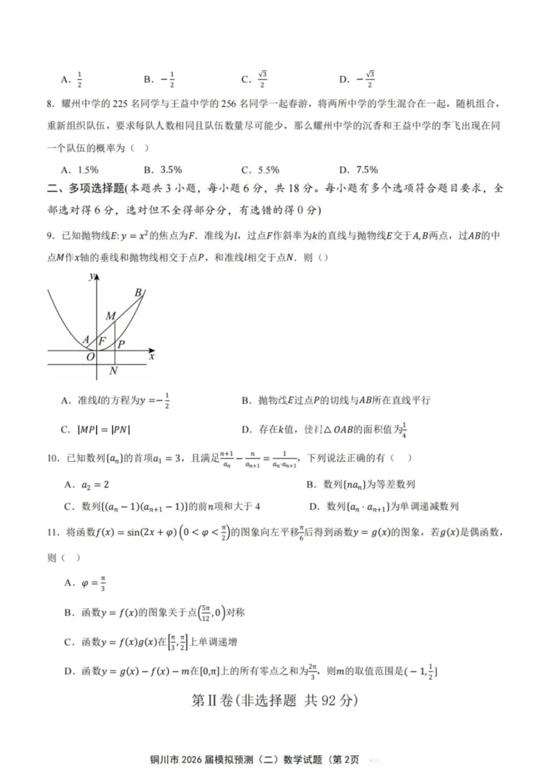 【全科】陕西铜川2026届高三模拟预测(二)