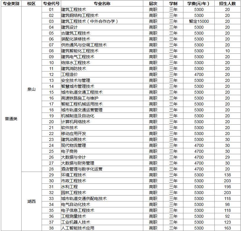 | 专科批 | 物理 | 不限 | 装配化装修技术 | 26 | (办学地点:泉山校区) |
