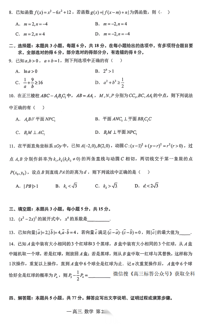 2026届江苏南通通州区高三下学期二模 2026届江苏南通通州区高三下学期二模