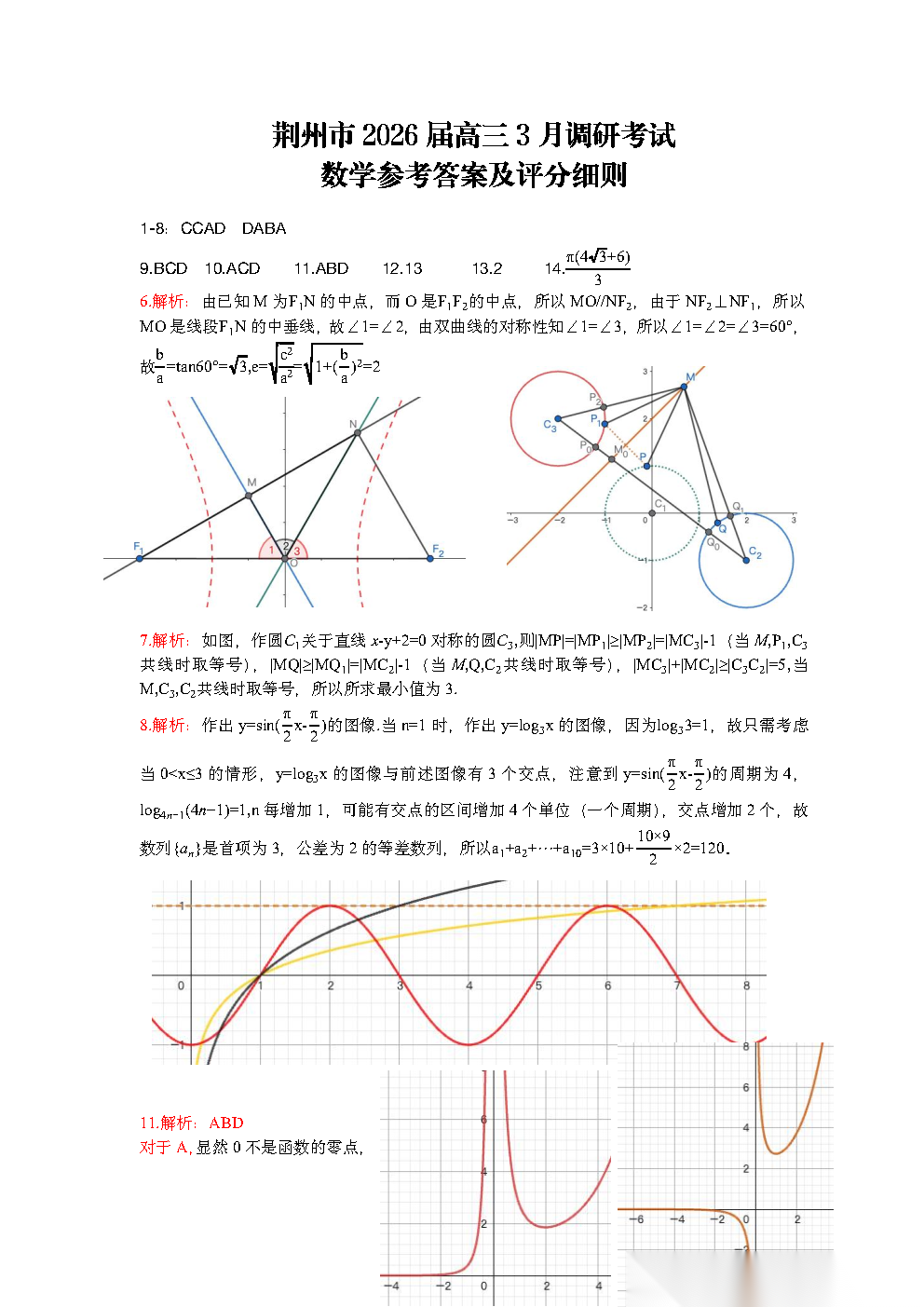 宁波十校2026届高三3月联考答案 宁波十校2026届高三3月联考答案