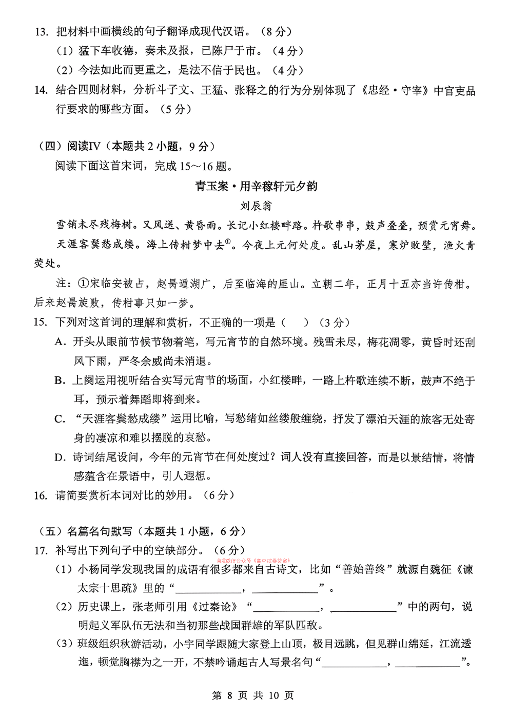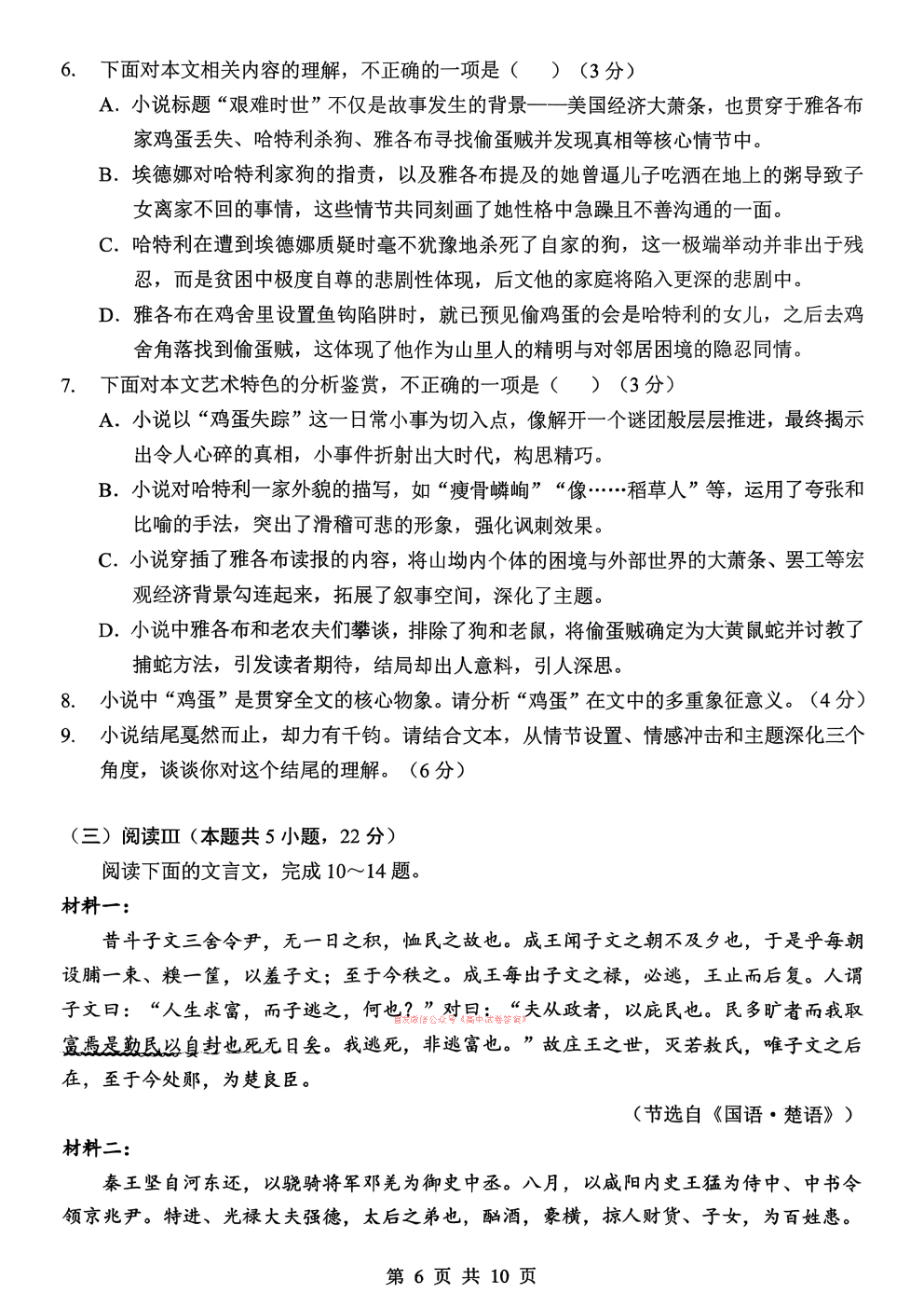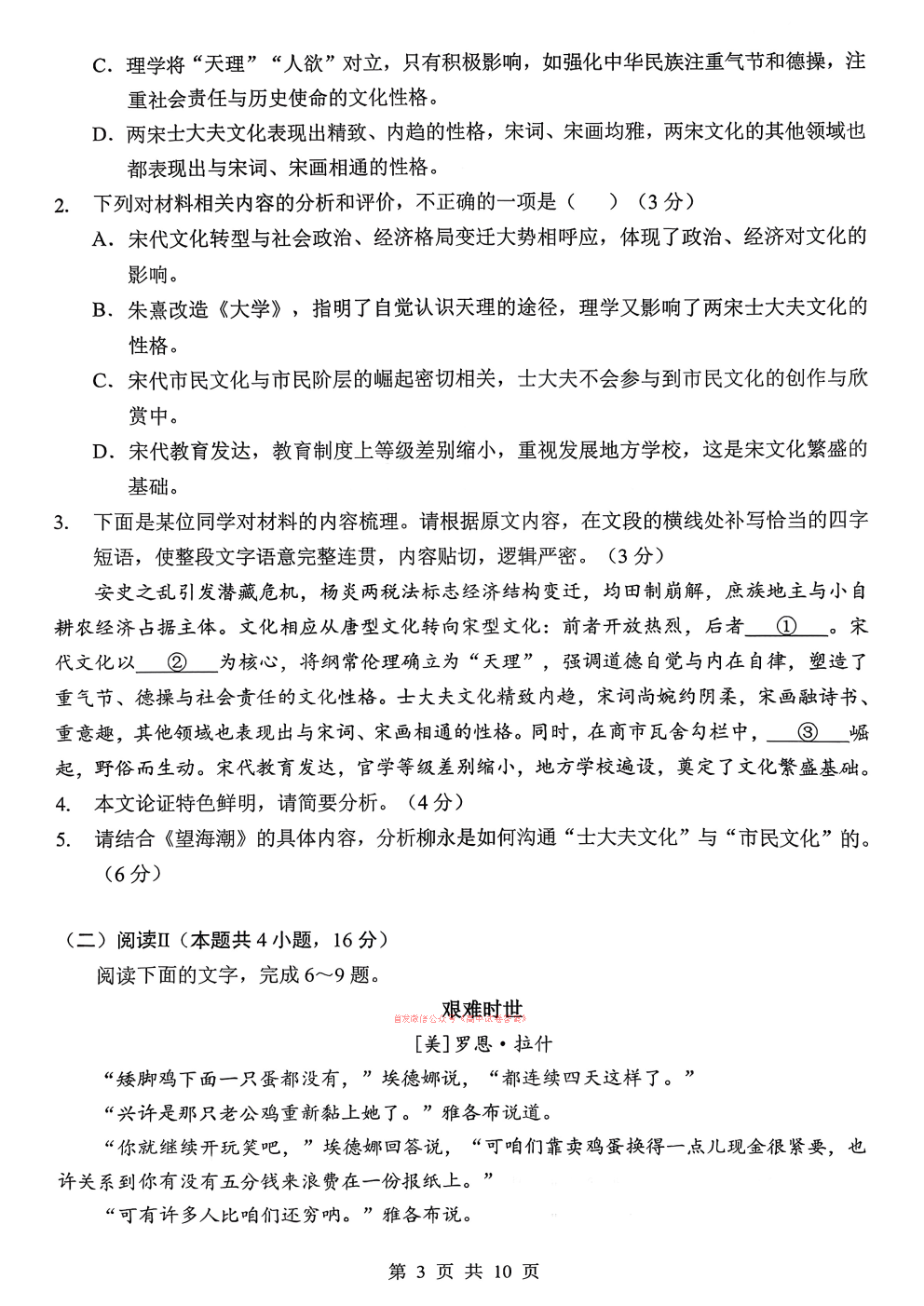 宁波十校2026届高三3月联考答案 宁波十校2026届高三3月联考答案