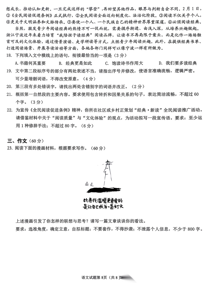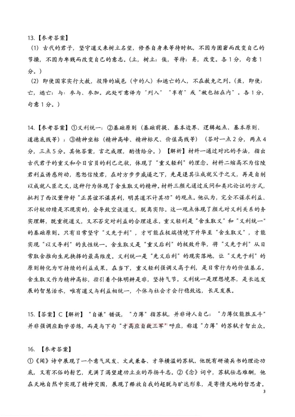 宁波十校2026届高三3月联考答案 宁波十校2026届高三3月联考答案