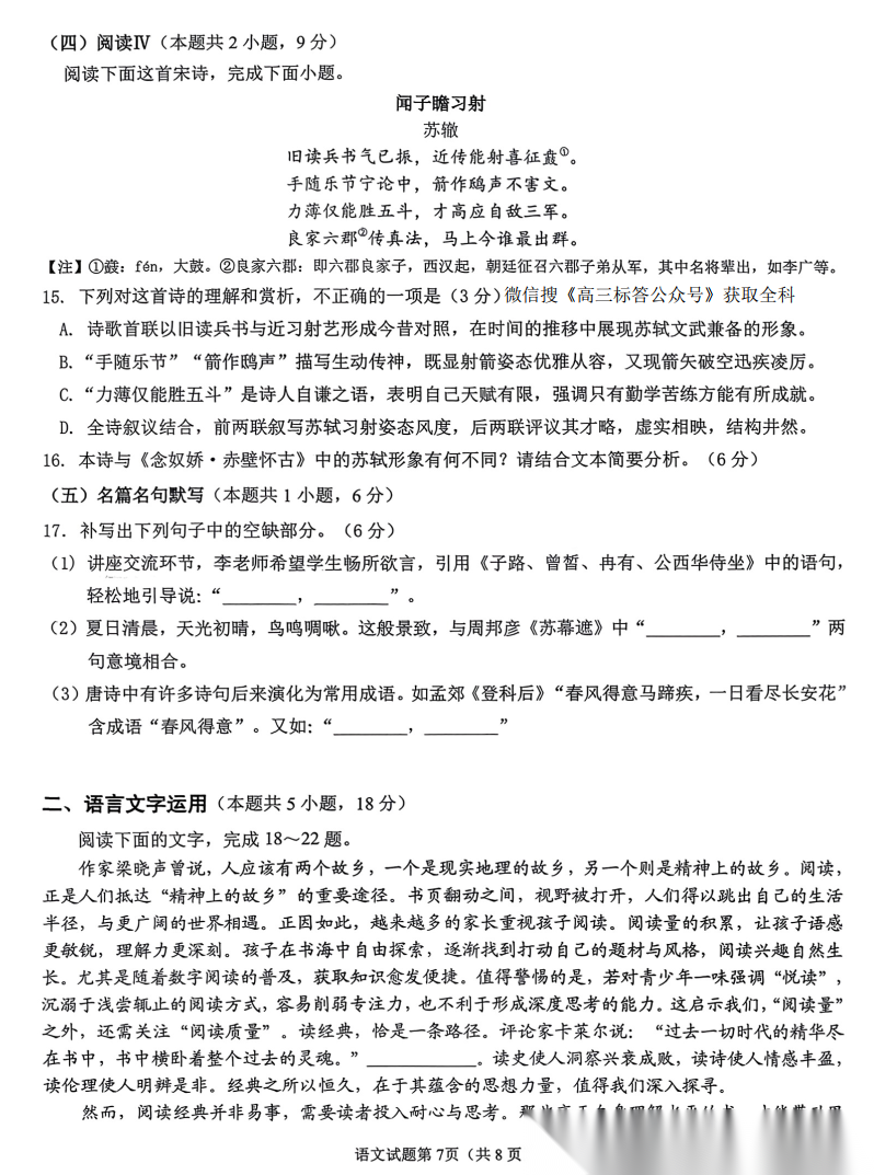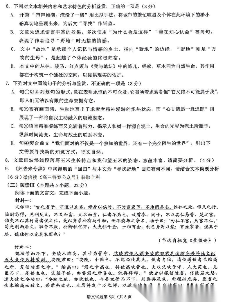 楚天协作体2026年高三3月模拟考试答案 楚天协作体2026年高三3月模拟考试答案