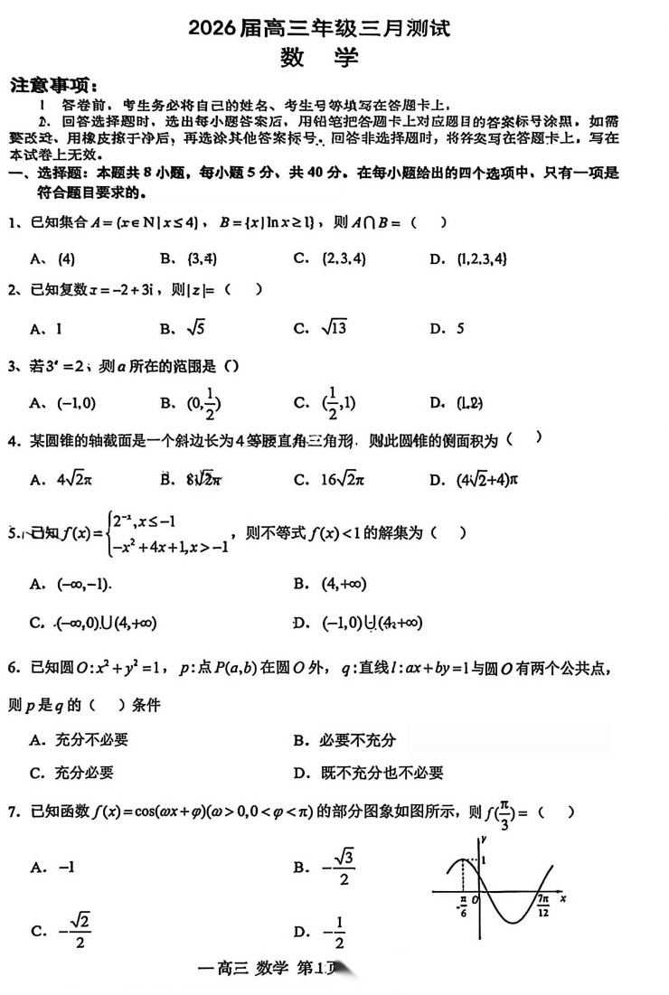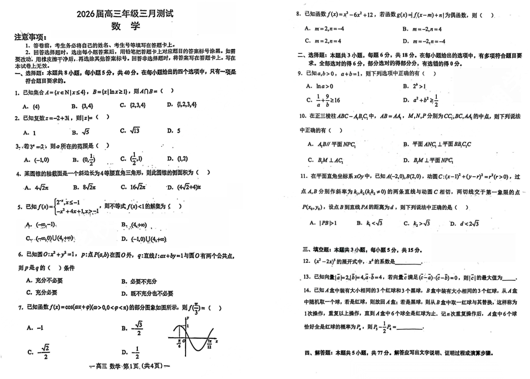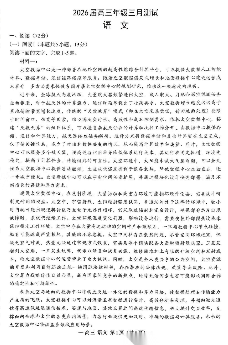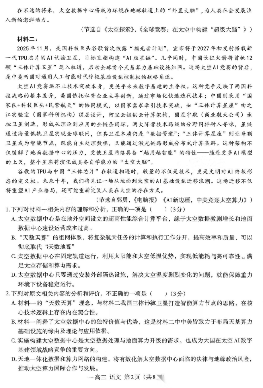 【江西卷】江西省南昌市2026届南昌市高三年级三月测试暨一模考试(南昌一模)(3.18-3.20) 数学语文试题卷+答案