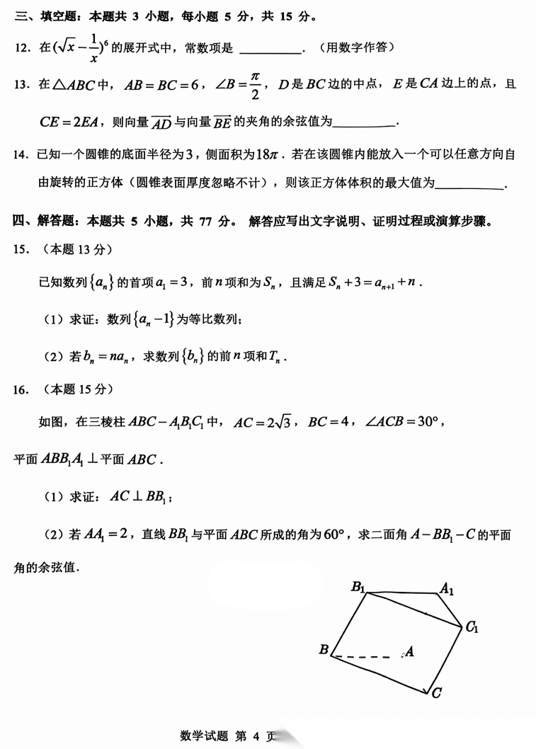 【安徽卷】安徽省安庆市2026年高三年级模拟考试(安庆二模)(3.18-3.20) 数学语文试题卷+答案 【安徽卷】安徽省安庆市2026年高三年级模拟考试(安庆二模)(3.18-3.20) 数学语文试题卷+答案