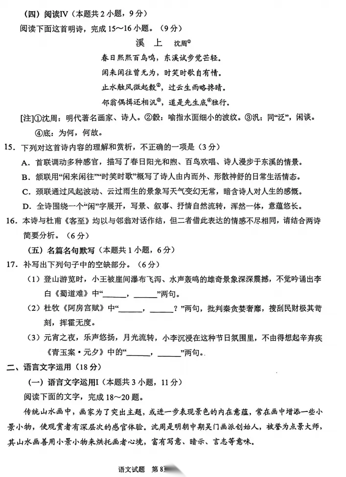 【广东卷】广东省江门市2026年3月高三年级高考模拟考试(江门一模)(3.18-3.20) 数学语文试题卷+答案 【广东卷】广东省江门市2026年3月高三年级高考模拟考试(江门一模)(3.18-3.20) 数学语文试题卷+答案