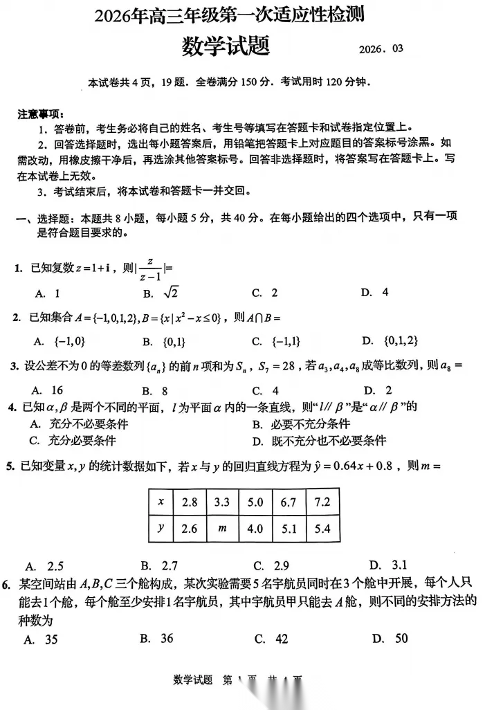【山东卷】山东省青岛市2026年高三年级第一次适应性检测(青岛一模)(3.16-3.18) 全科试题卷+答案