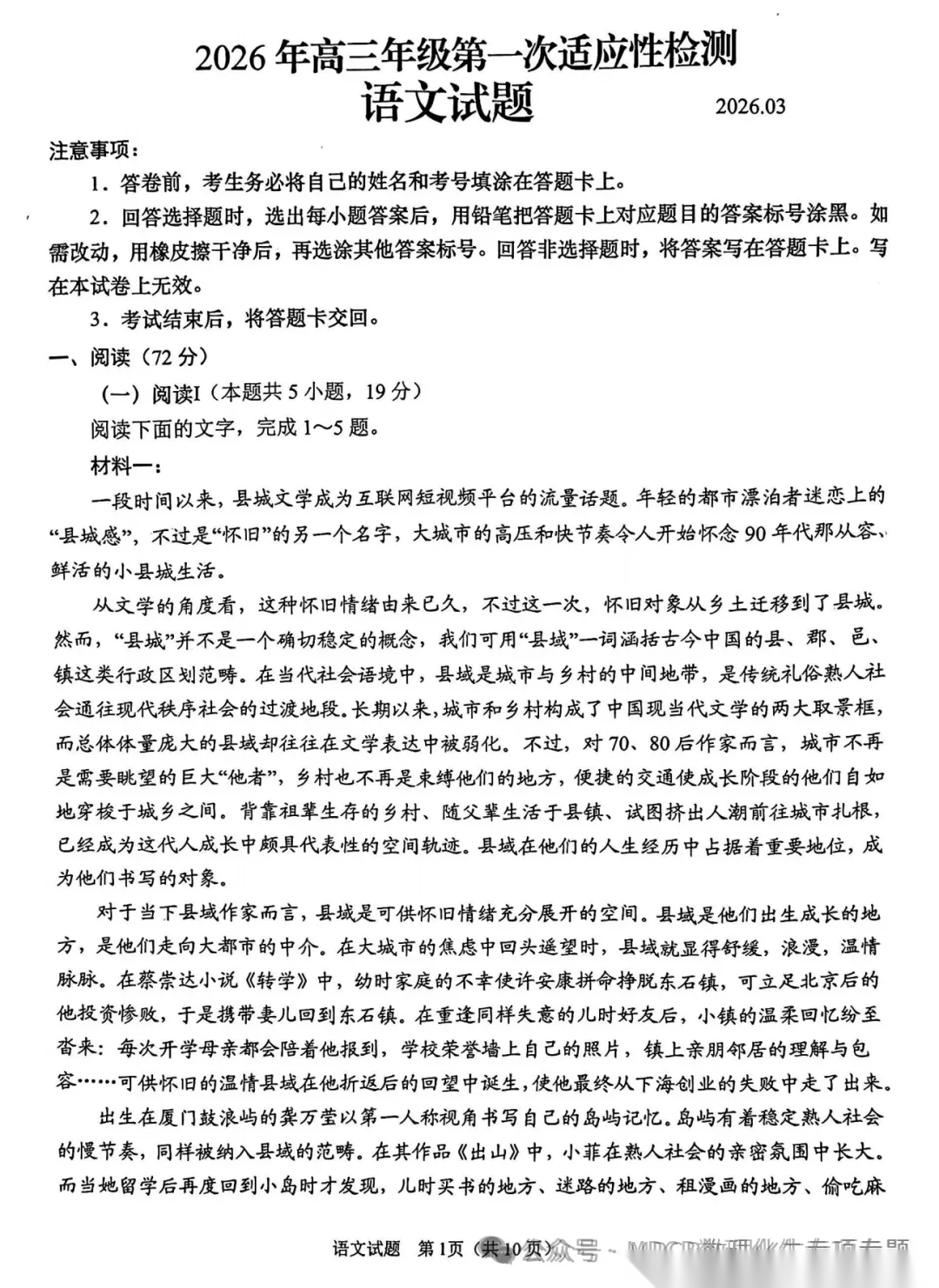 【江西卷】江西省南昌市2026届南昌市高三年级三月测试暨一模考试(南昌一模)(3.18-3.20) 数学语文试题卷+答案 【江西卷】江西省南昌市2026届南昌市高三年级三月测试暨一模考试(南昌一模)(3.18-3.20) 数学...